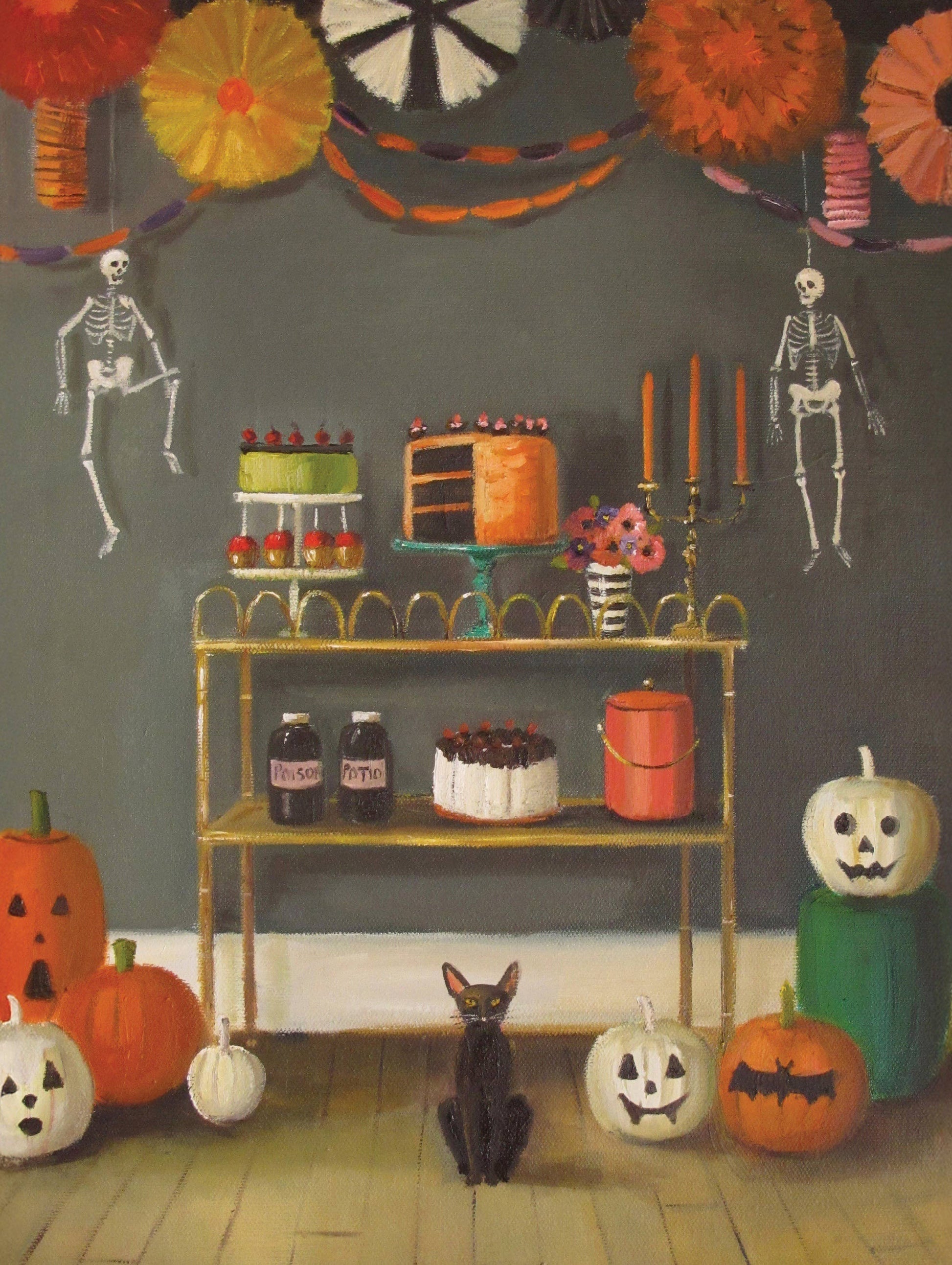 Get ready for a hauntingly delightful evening with the At Midnight 750 piece jigsaw puzzle, illustrated by the ever-whimsical Janet Hill. This beautifully detailed puzzle captures a cozy, intimate Halloween celebration, filled with charm, mystery, and a touch of vintage elegance.