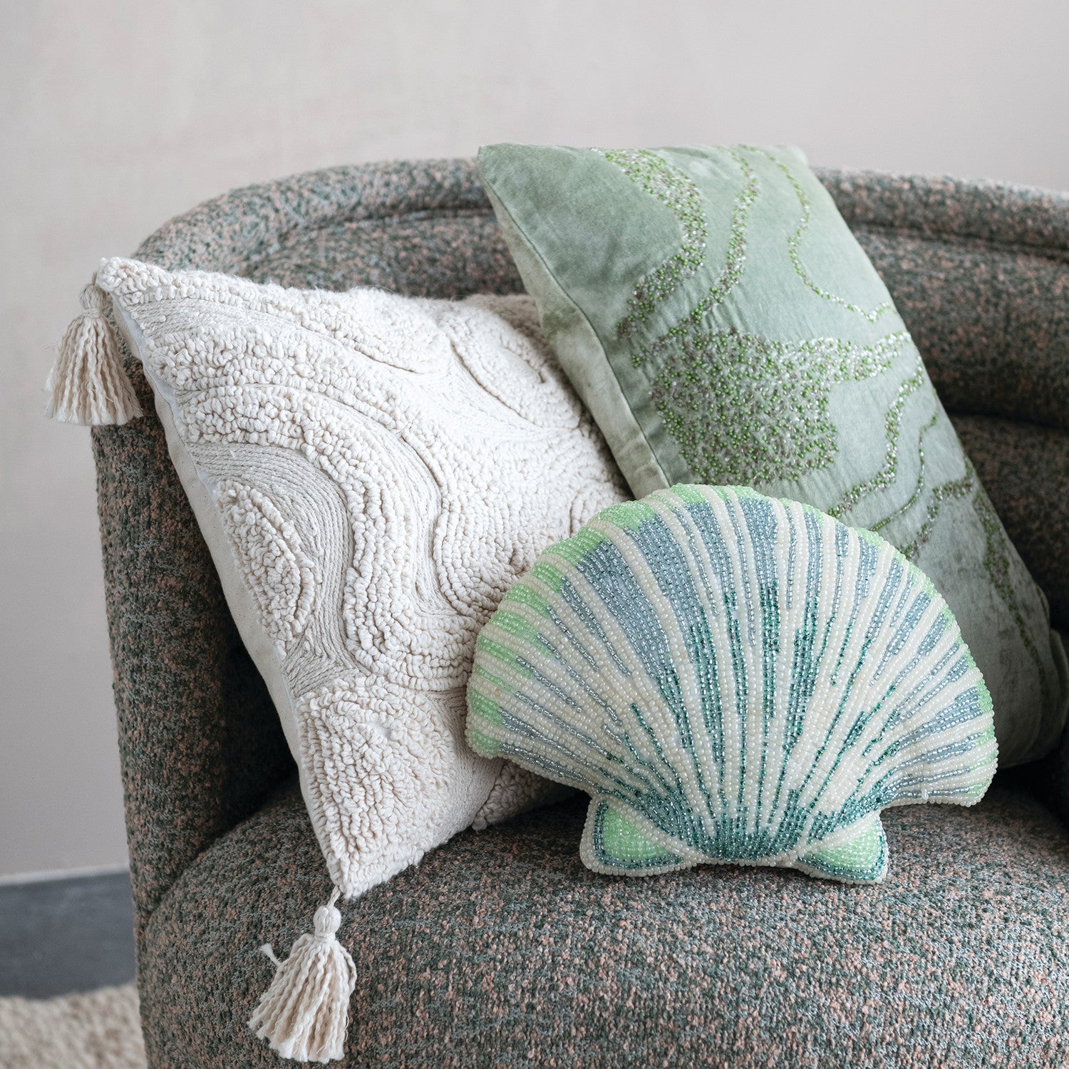 This mint colored beaded lumbar pillow adds an elegant touch to your decor.