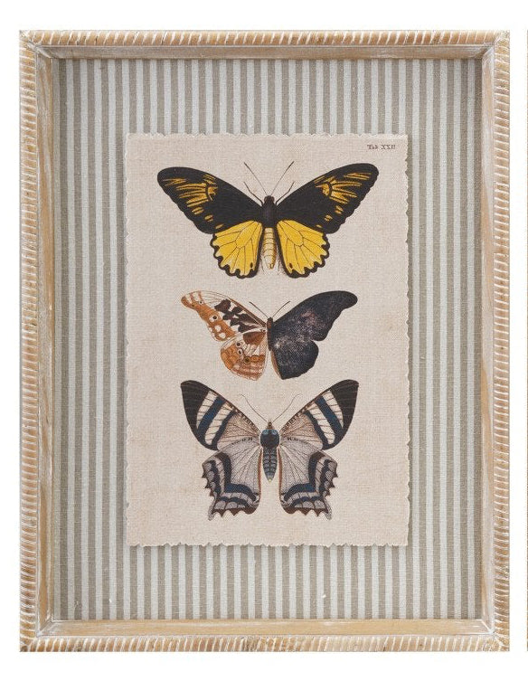 Colorful butterflies surrounded by a pinstripe mat make a stylish addition to any gallery wall.