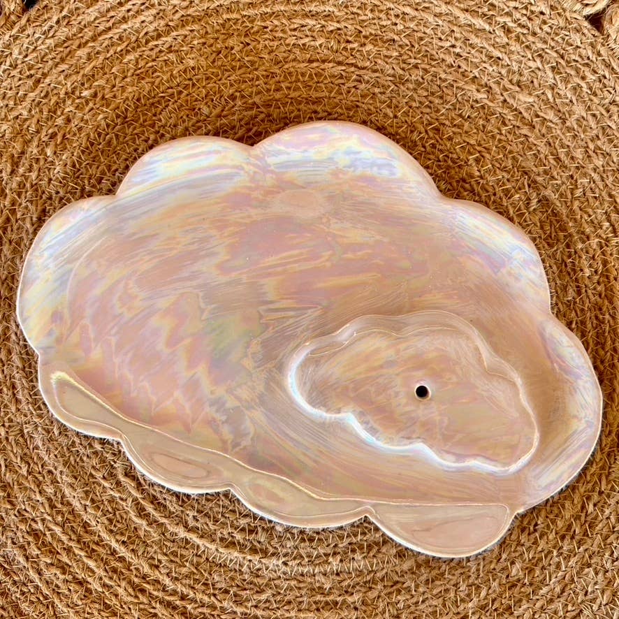 These dreamy ceramic clouds are great for holding your incense, or can be used to hold trinkets, jewelry, and special things. Each one is handmade, so slight variations will occur. Glazed in white with an iridescent finish.