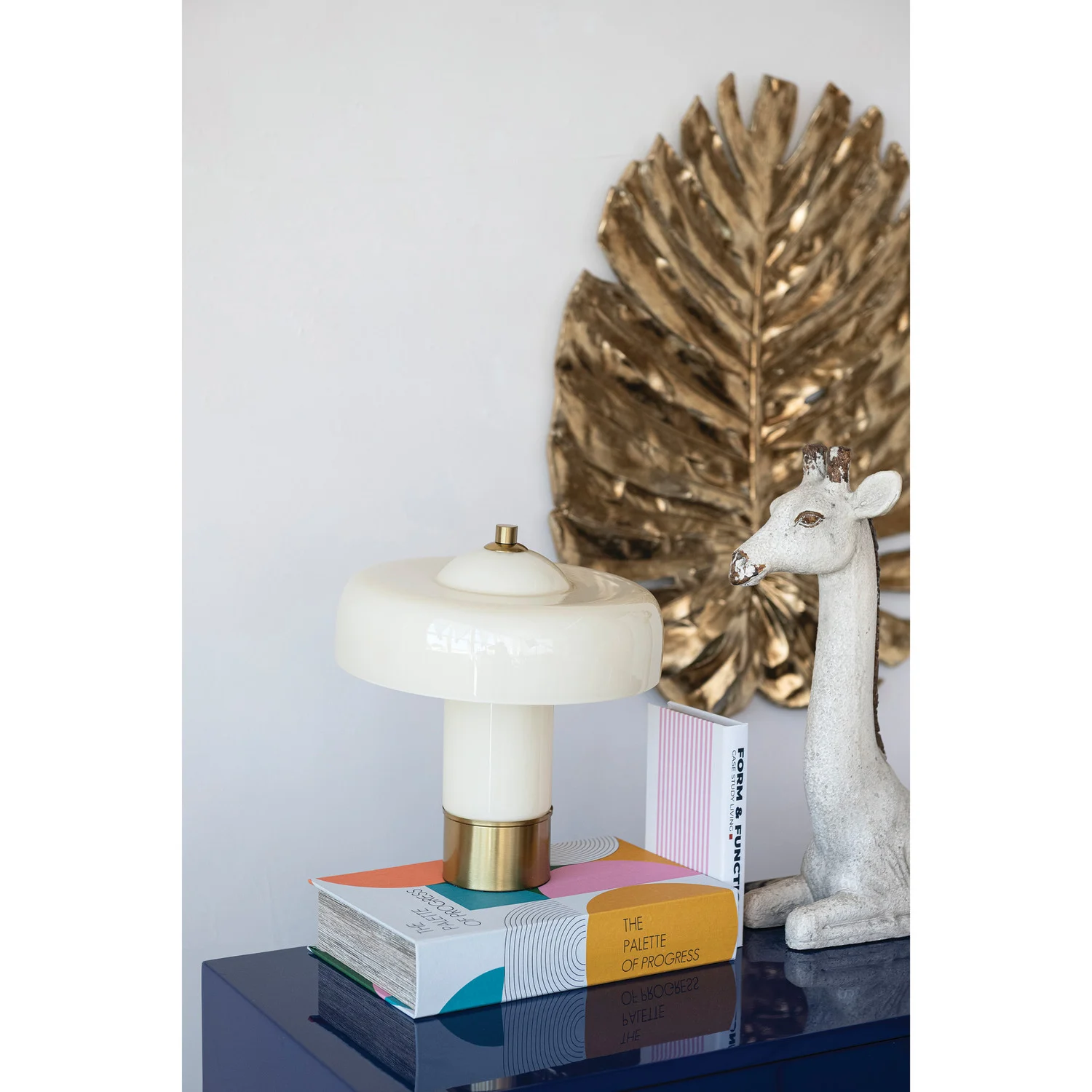 Color: Cream & GoldMeasurements: 11.75" Round x 12.75"HMaterial: Glass & Metal
