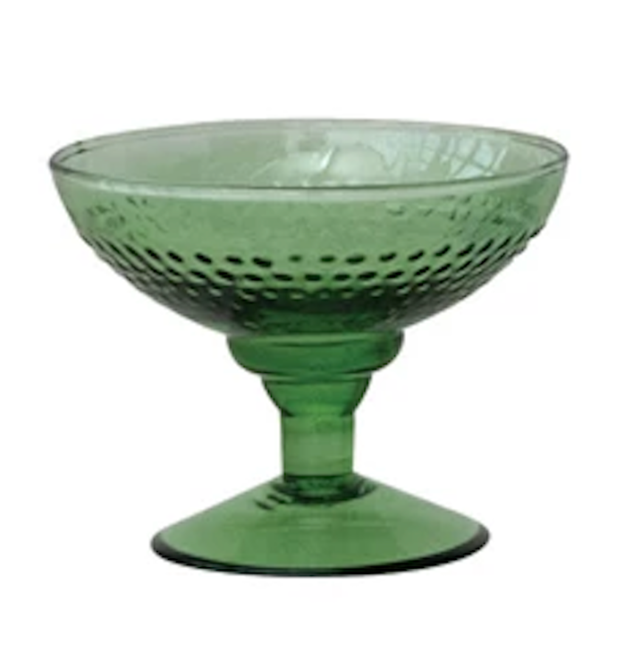 4-1/4" Round x 3-1/4"H 4 oz. Embossed Stemmed Coupe Glass, 4 Colors