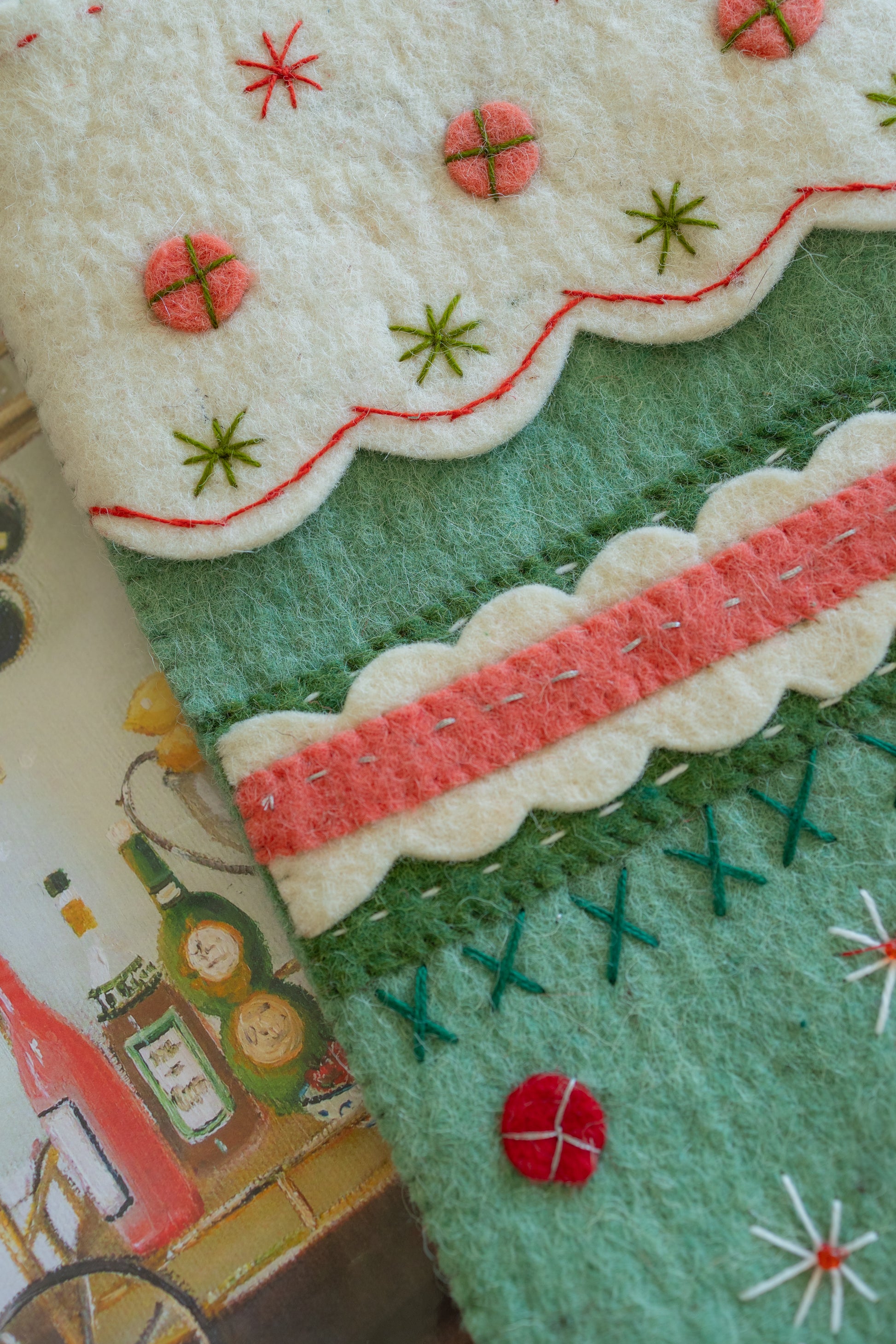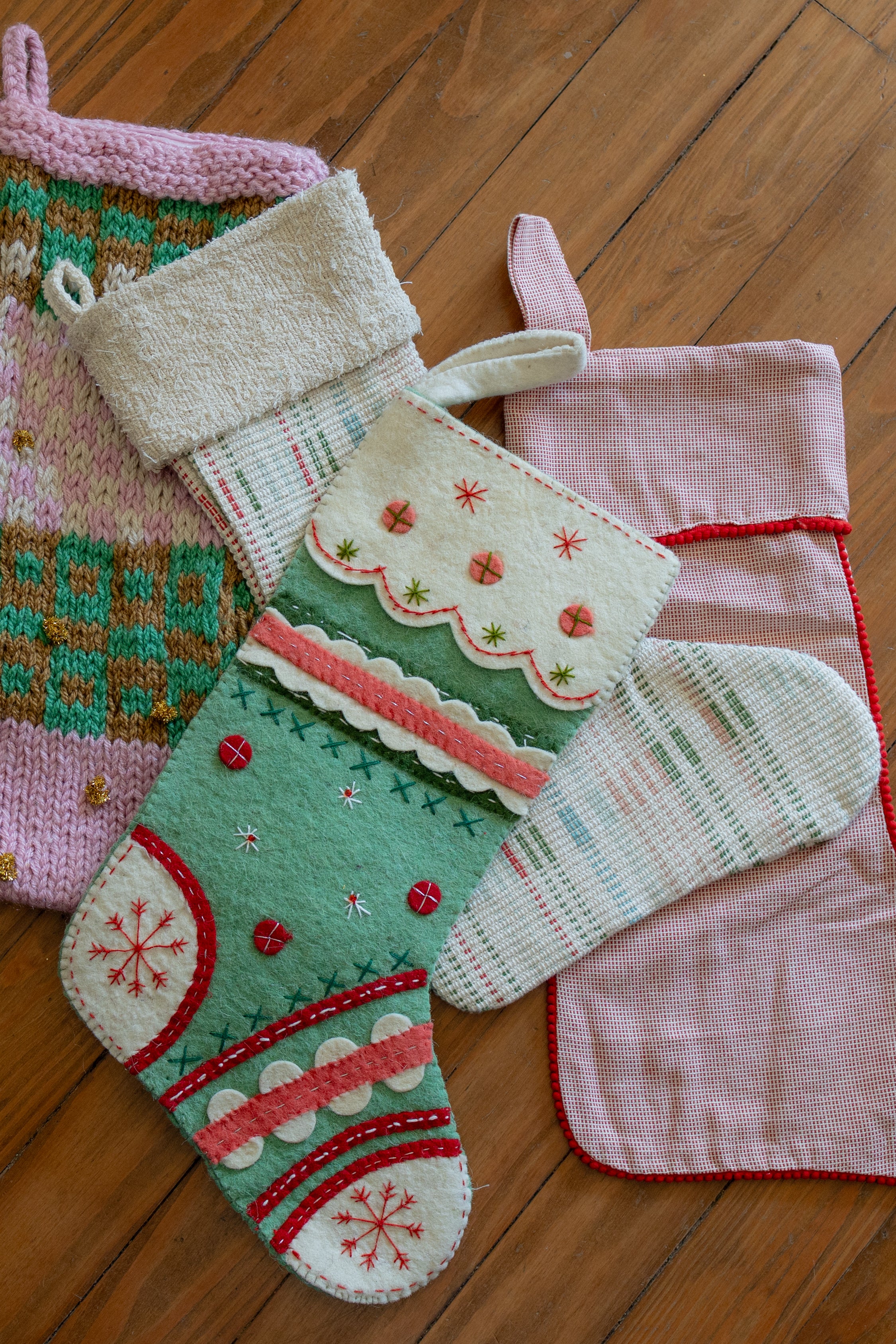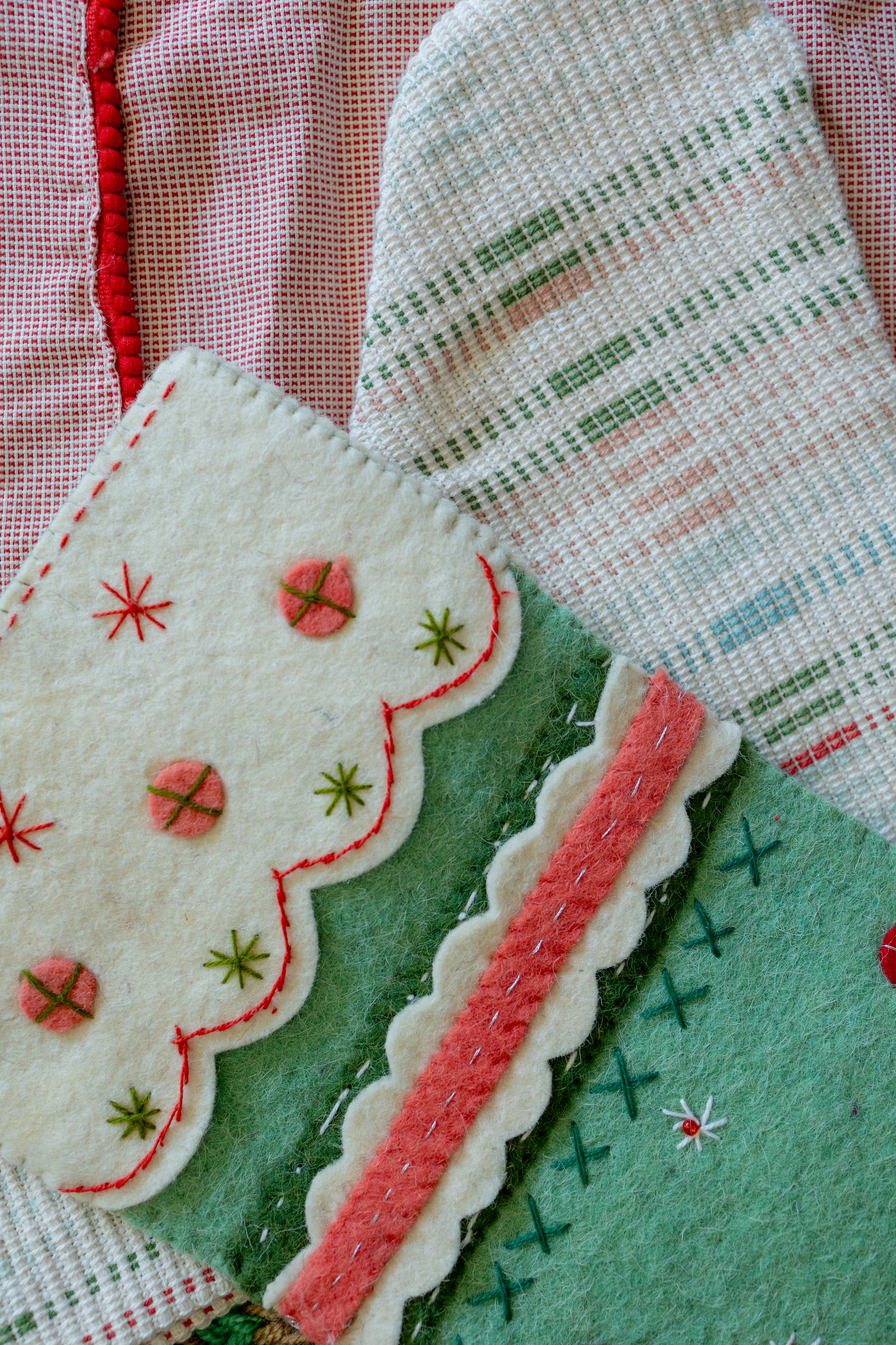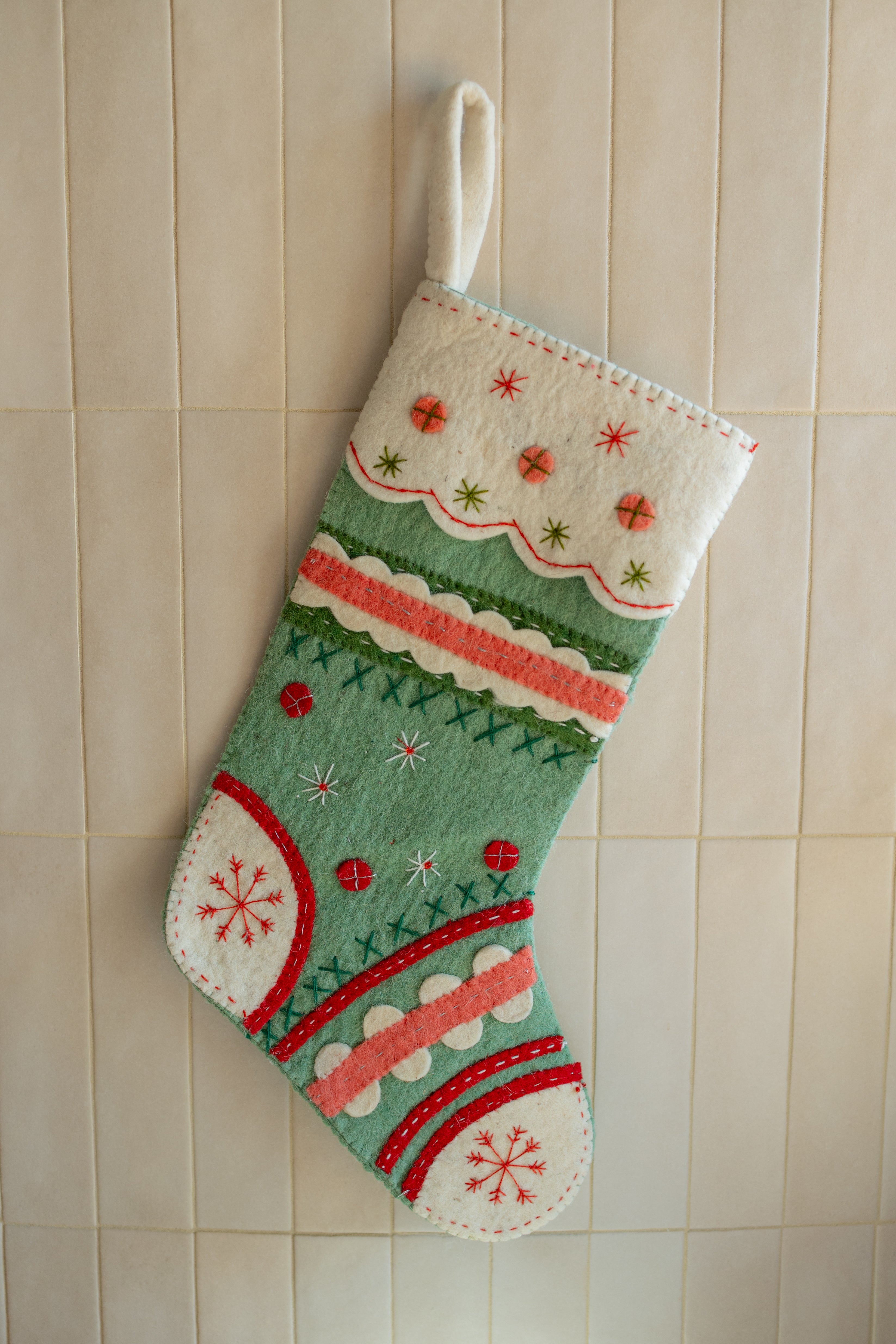 19"H Handmade Wool Felt Stocking w/ Embroidery, Applique & Metallic Thread, Multi Color