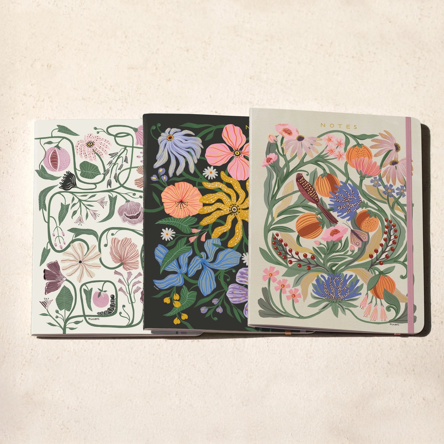 Seedlings Trio Notebook Sets featuring 3 lined notebooks that are fully embellished with unique foil details on the front covers. Each notebook has 64 lined pages each, a sewn binding, an elastic closure and the set is banded together with a plantable seed paper packaging that is biodegradable and embedded with wildflower seeds.