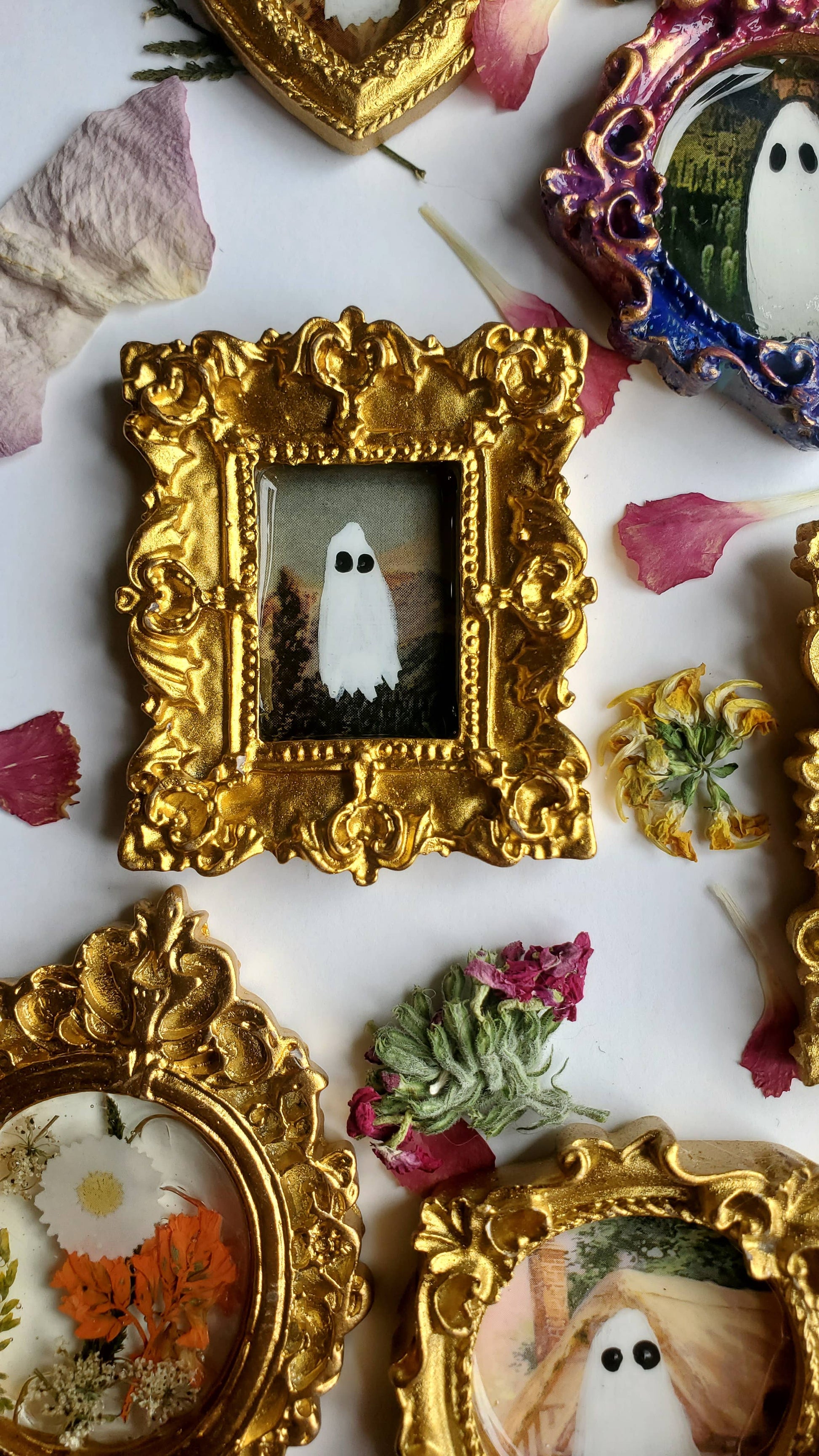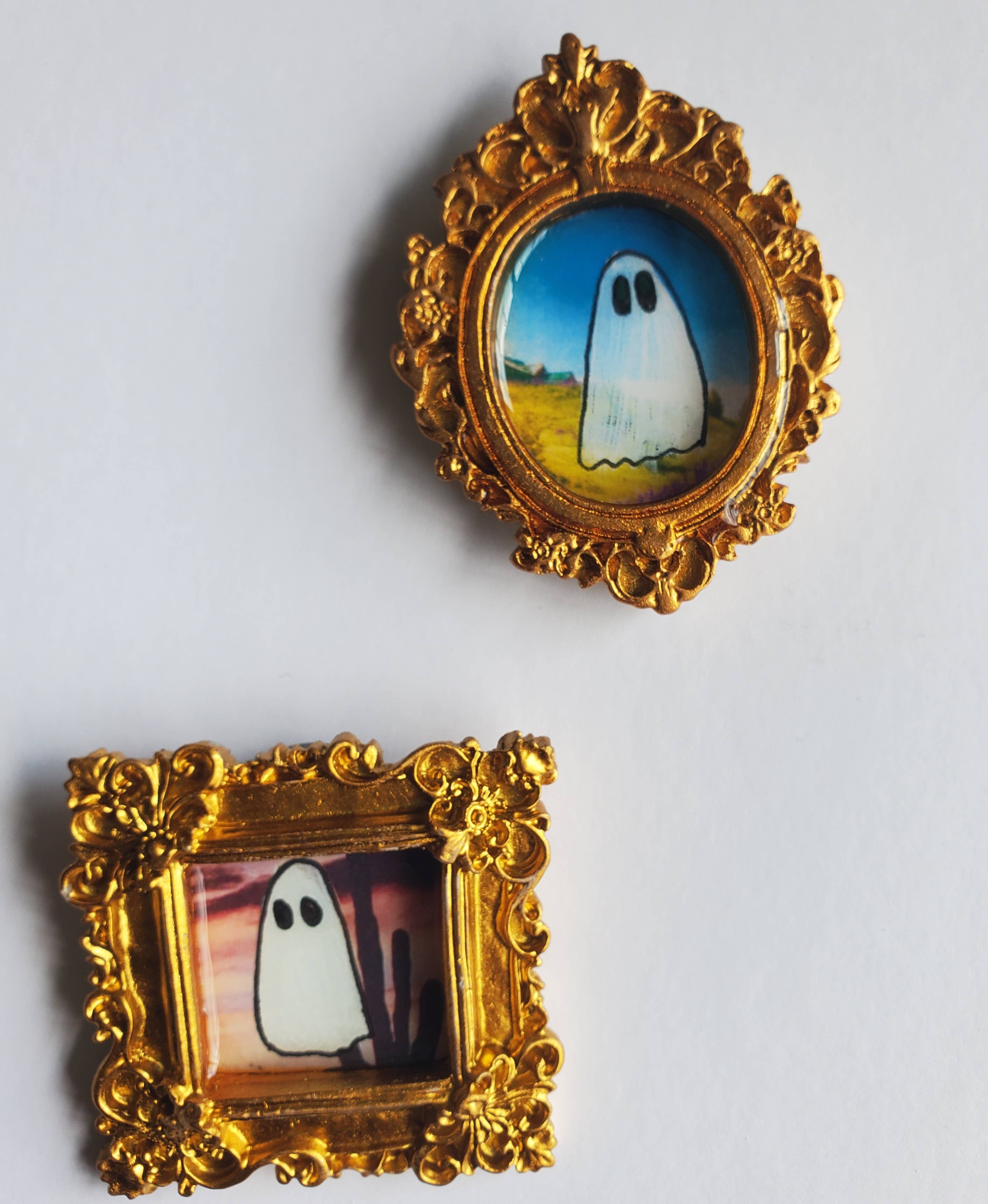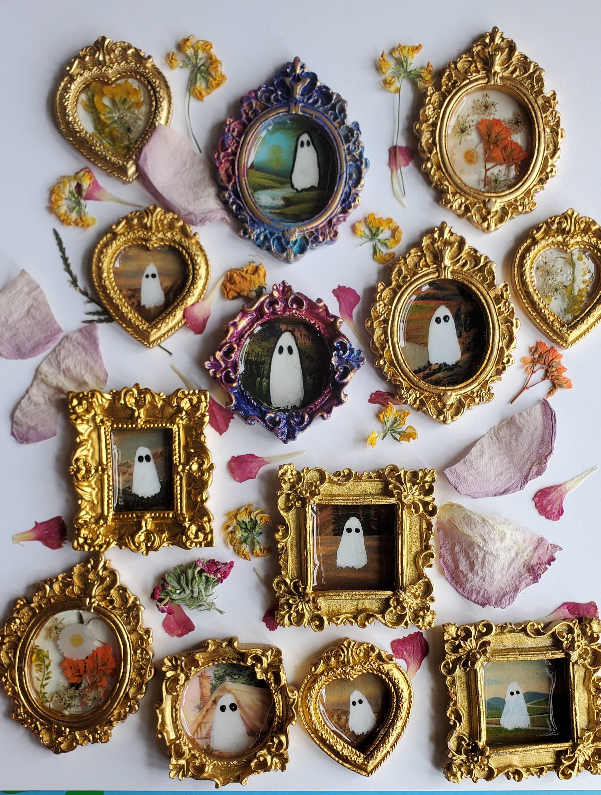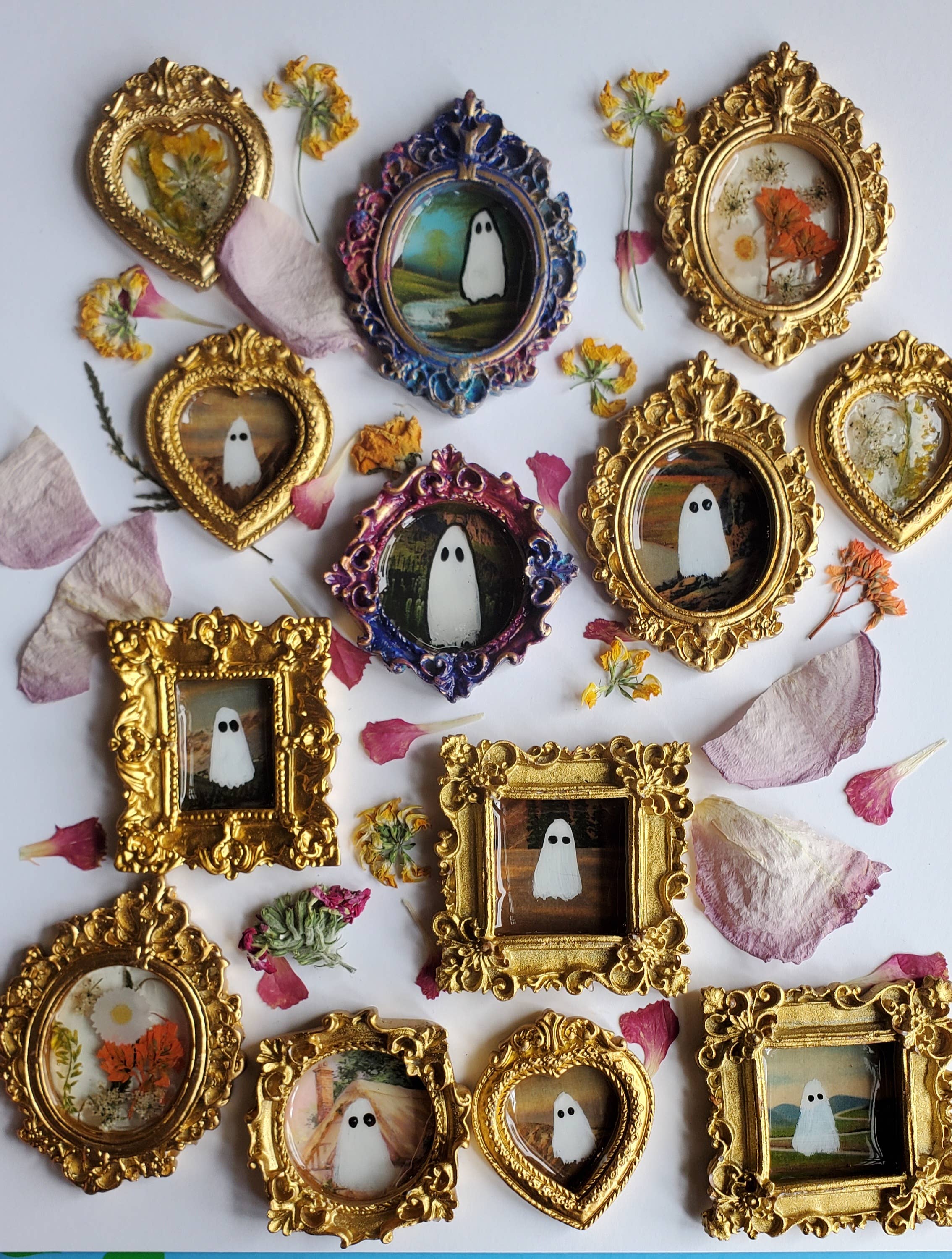 Each 2 to 3 inch magnetic frame features an adorable ghost characters enjoying various scenic locations.