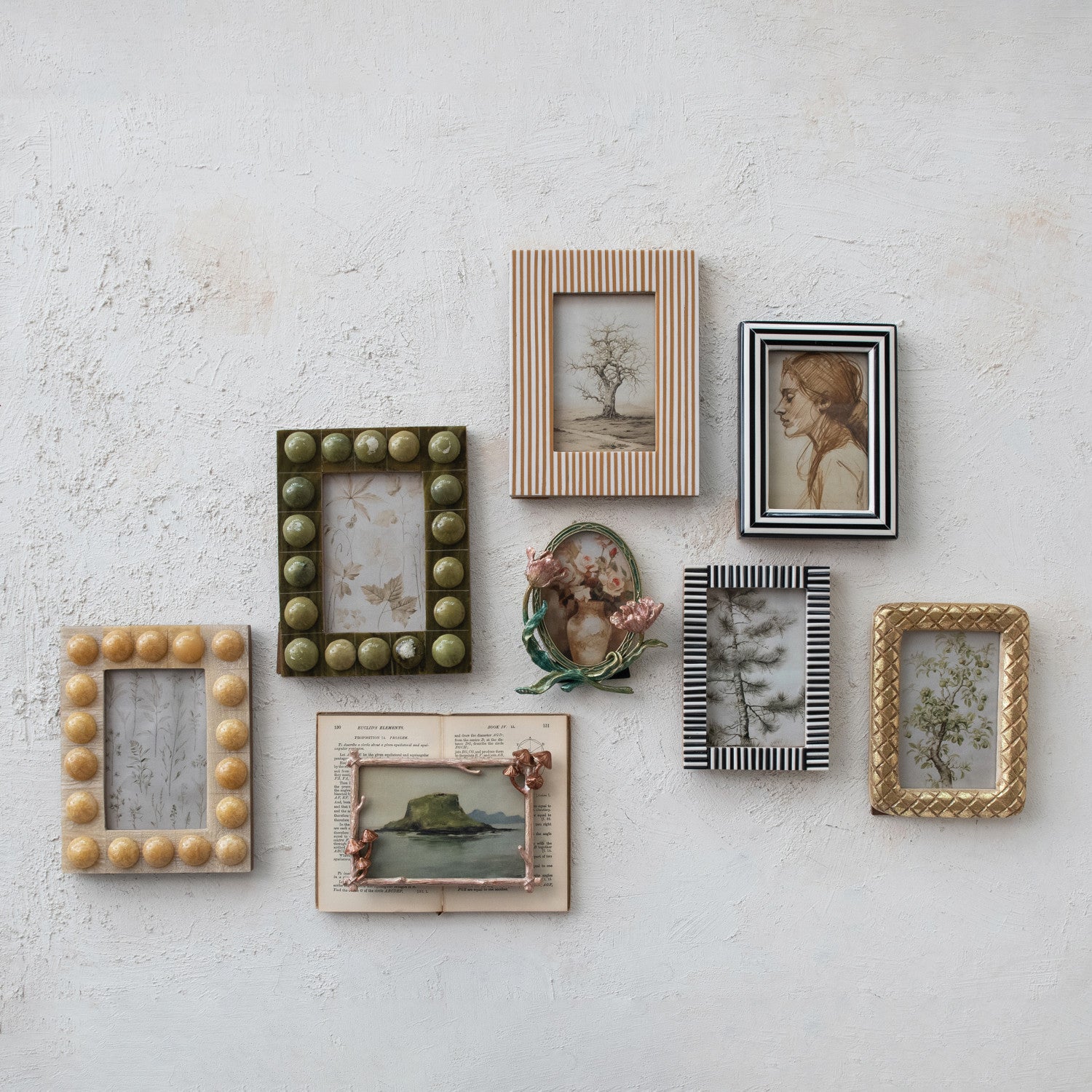 5-1/4"L x 7-1/4"H Carved Mango Wood Photo Frame w/ Diamond Pattern, Gold Foil Finish