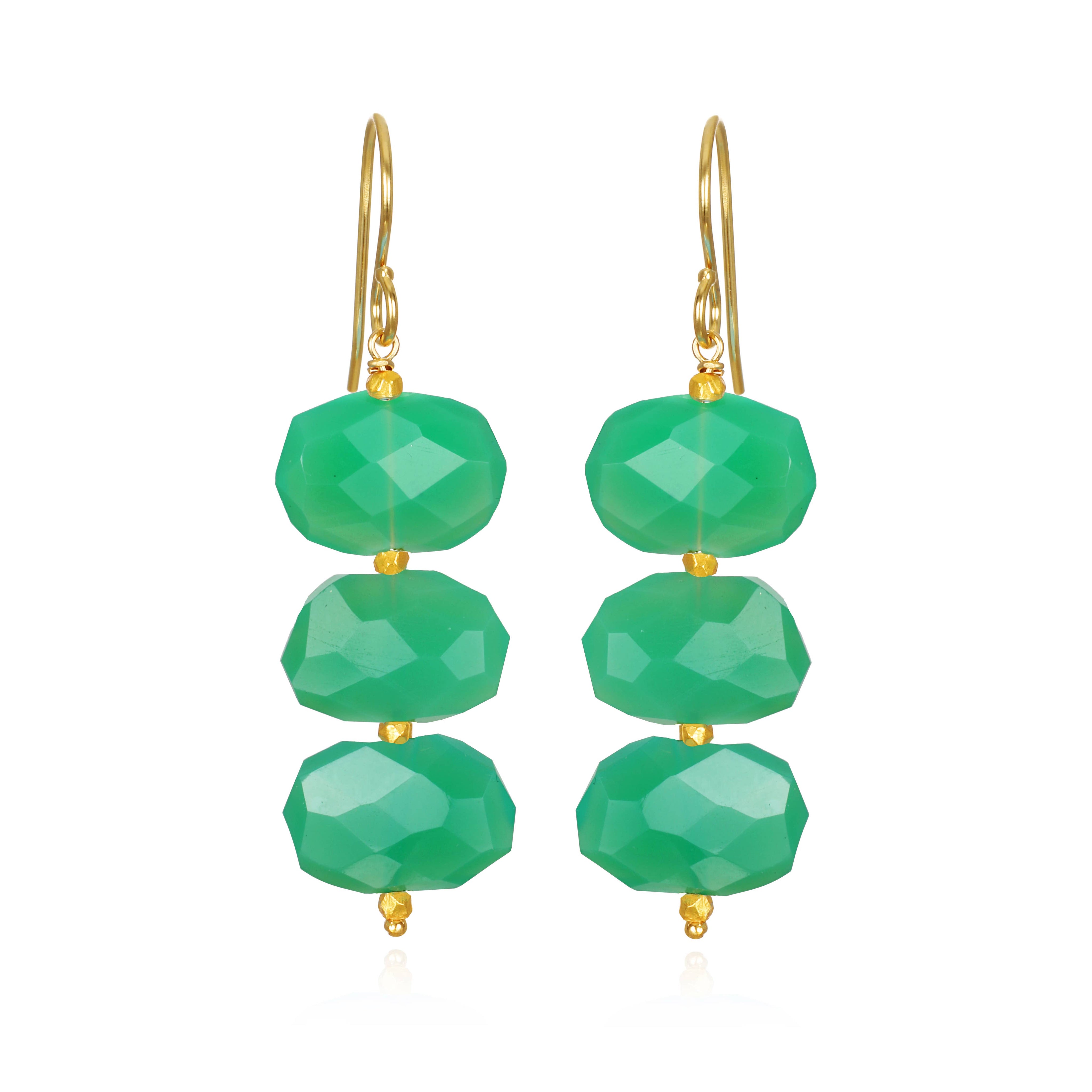 Faceted chrysoprase stones with sparkle beads in 14k gold vermeil, 14k gold filled French hook ear wires. Total drop of 1.5."