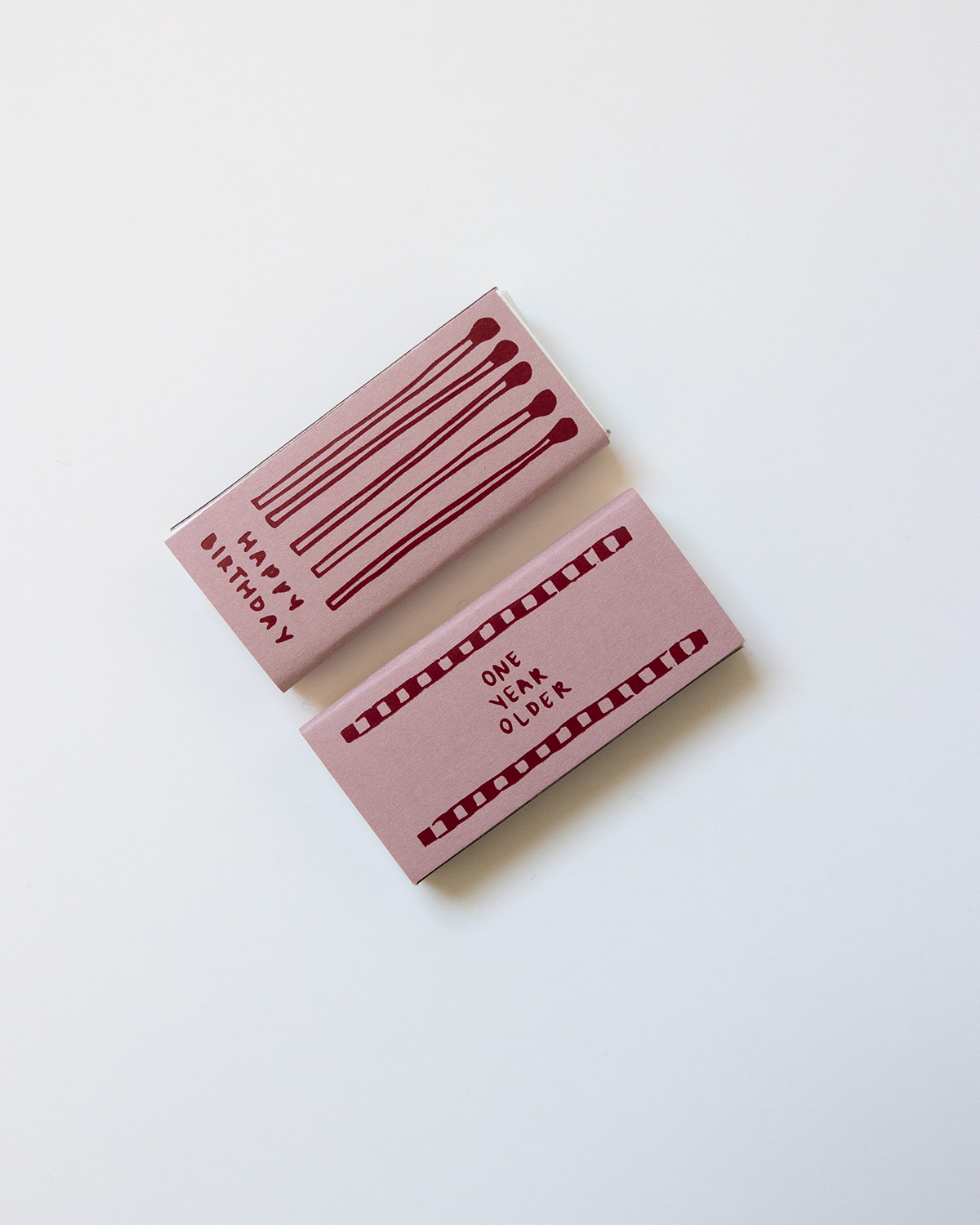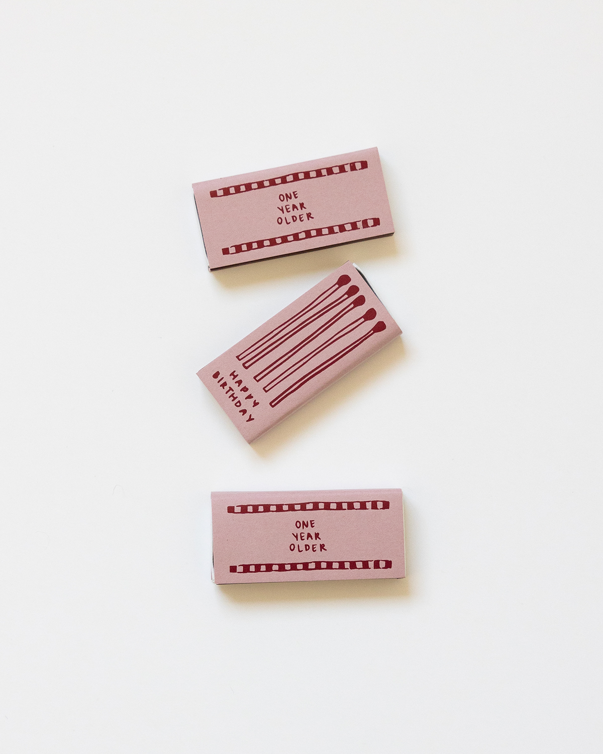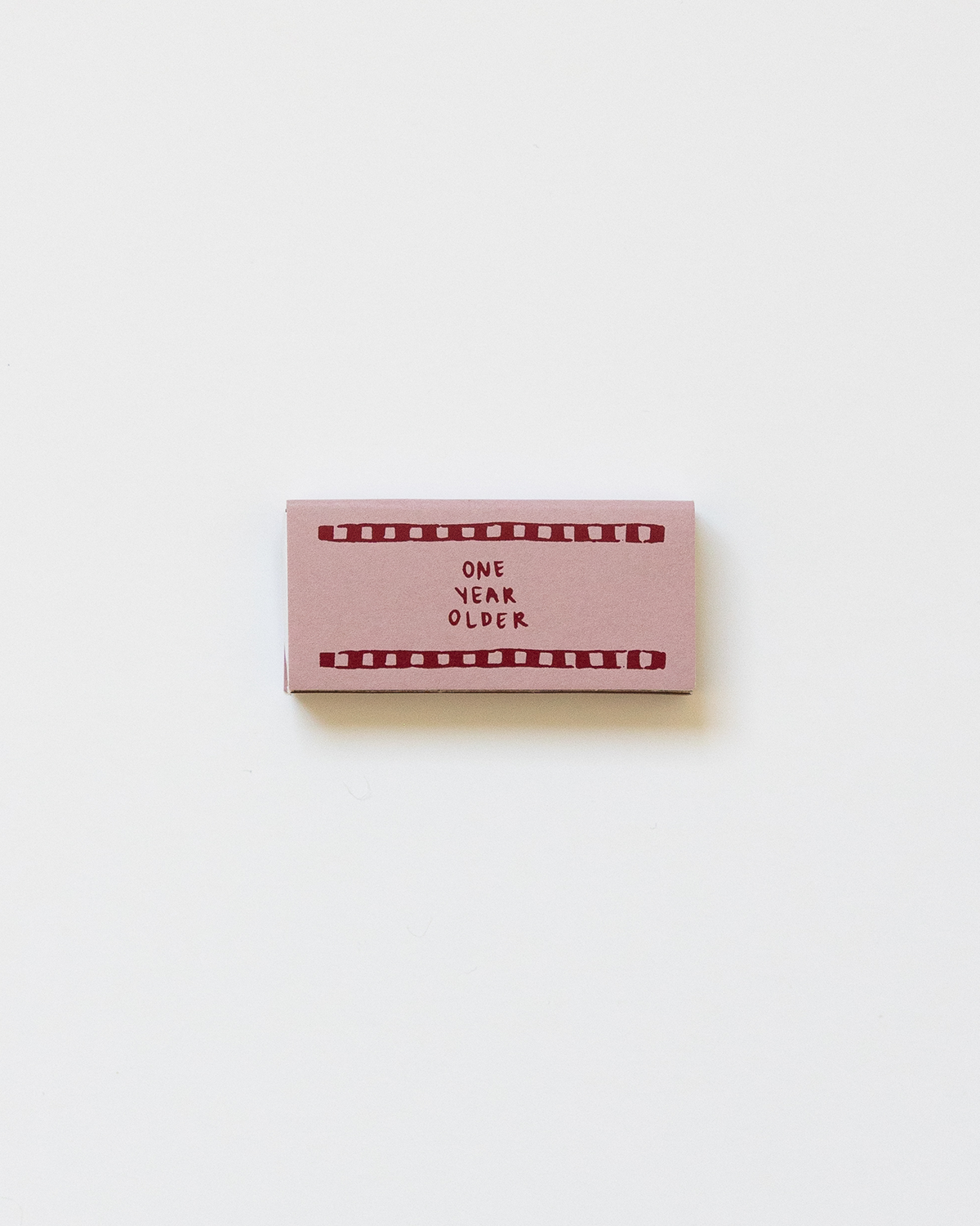 Measuring 2.25" L × 1" W, it's the perfect pocket-sized companion for birthday celebrations and togetherness. Our matchbox features a charming design that says "One Year Older" in a playful font with checkered lines, accompanied by birthday candles on the back. It's a fun touch that adds to any birthday gift.