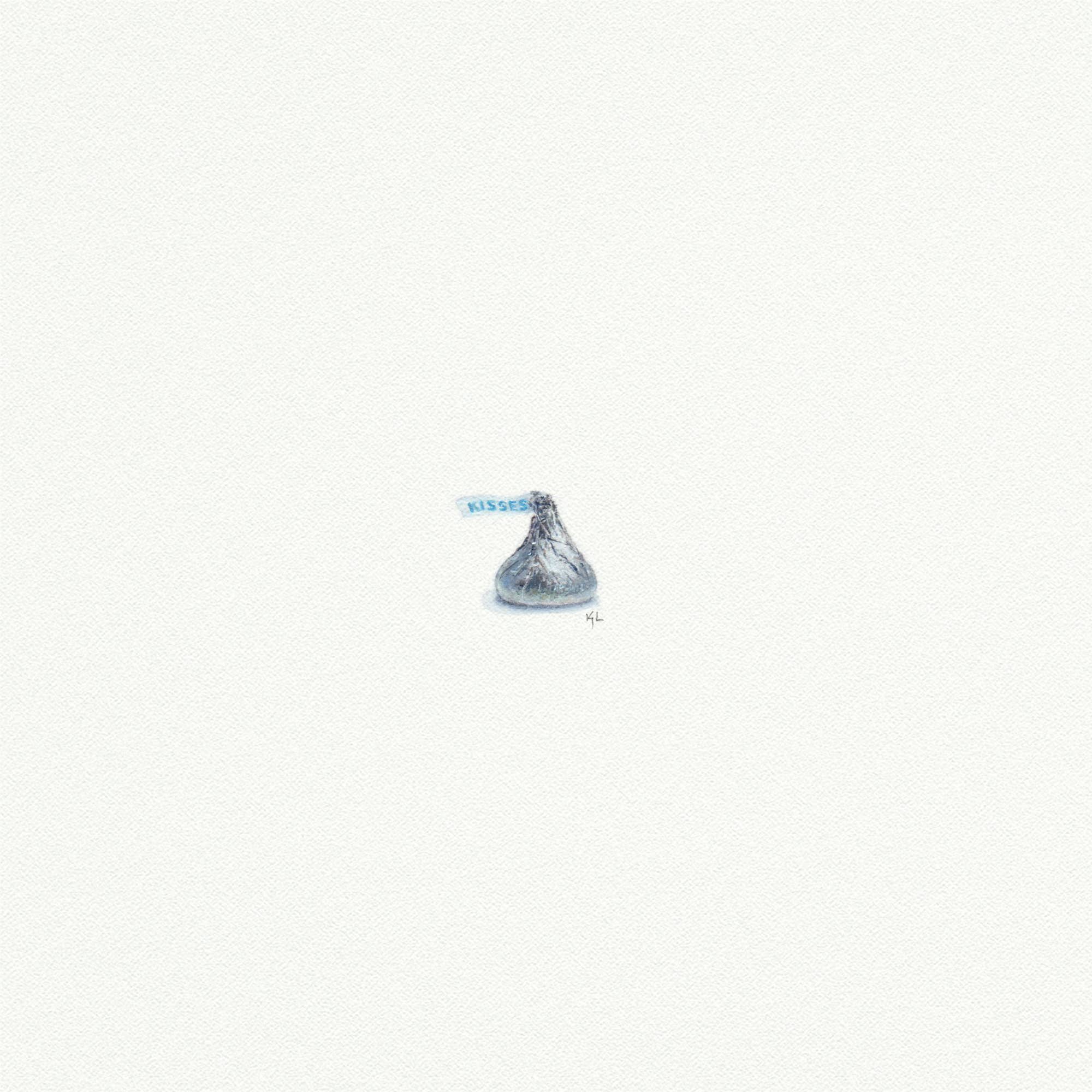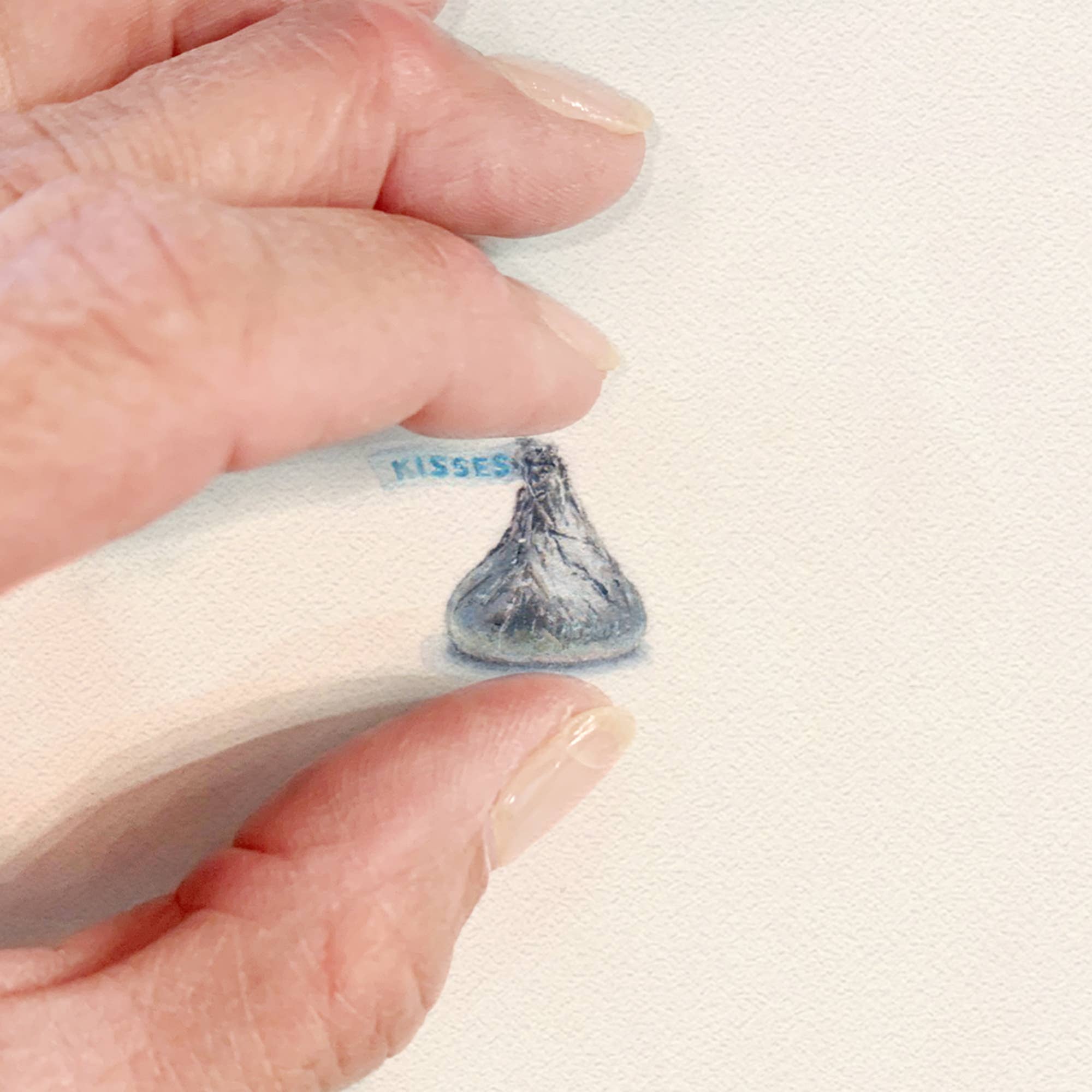 Miniature watercolor reproduction of a Hershey's Kiss.