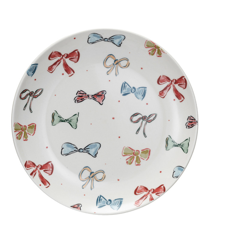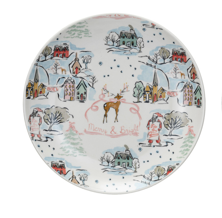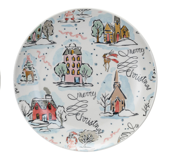 This multicolor round stoneware plate with a holiday pattern is perfect for celebrating the holiday season or creatin...