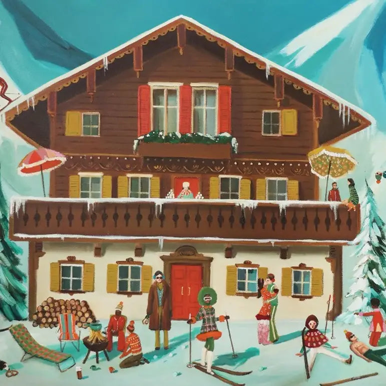 On the mountainside ski house, an enchanting entourage of interesting characters has come together, each embracing the winter wonderland in their unique ways.