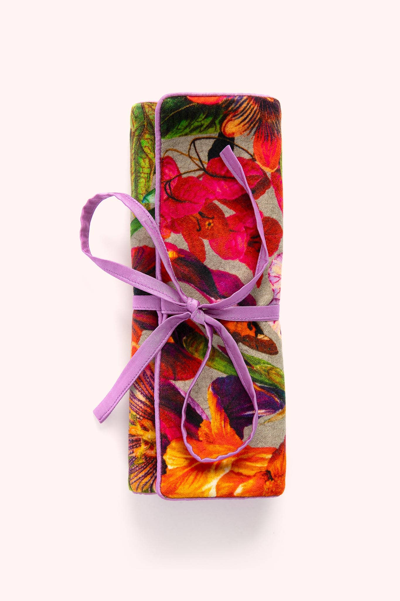 Keep your favorite jewels and heirlooms safely cocooned in our gorgeous velvet jewelry roll. With pockets and loops to protect rings, earrings bracelets and necklaces this is the ideal jewelry companion. The designs includes the bold botanical prints for the ultimate luxury feel.