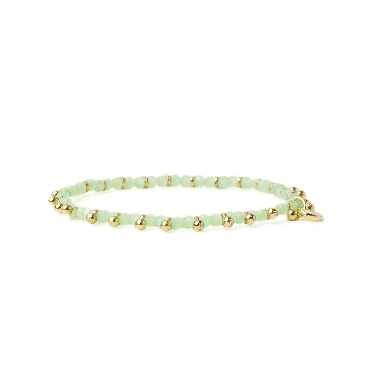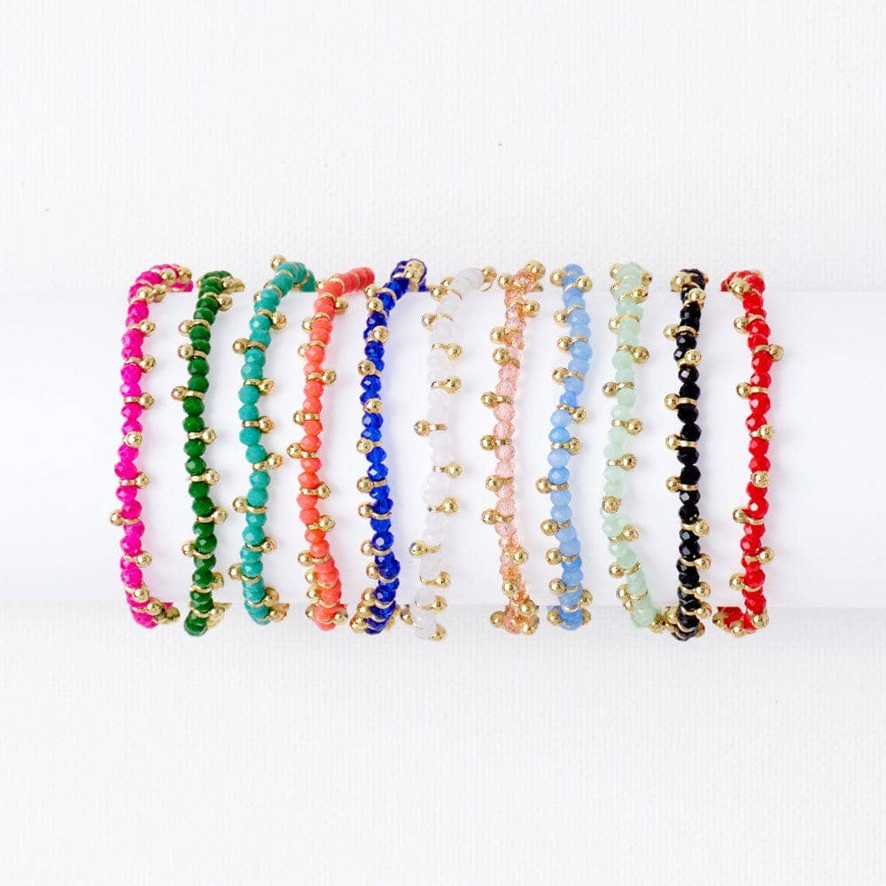 Clean colors meet classic charm with the mixing of bright crystals and subtle brass details. These lightweight, stretchy bracelets bring effortless style to any outfit. •
