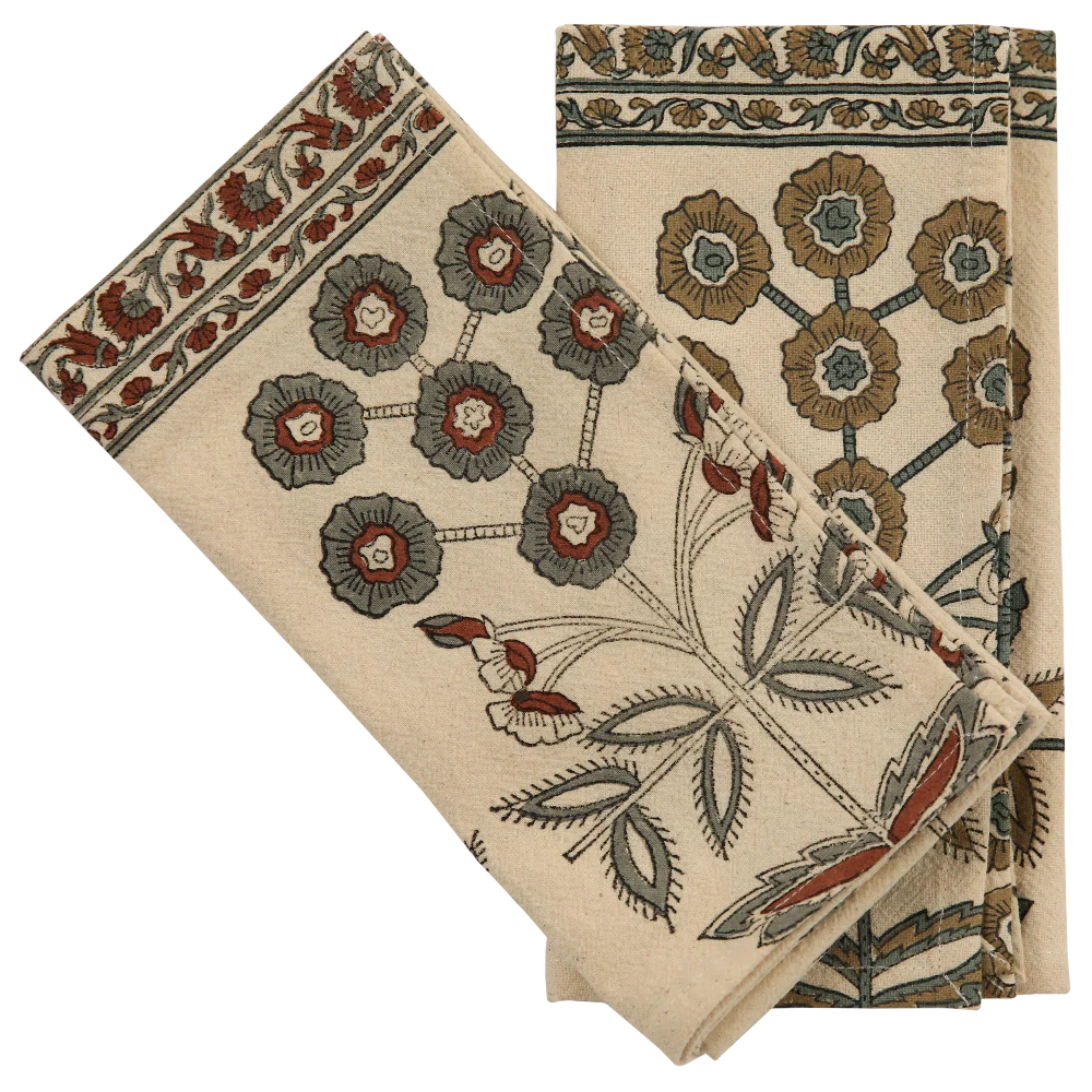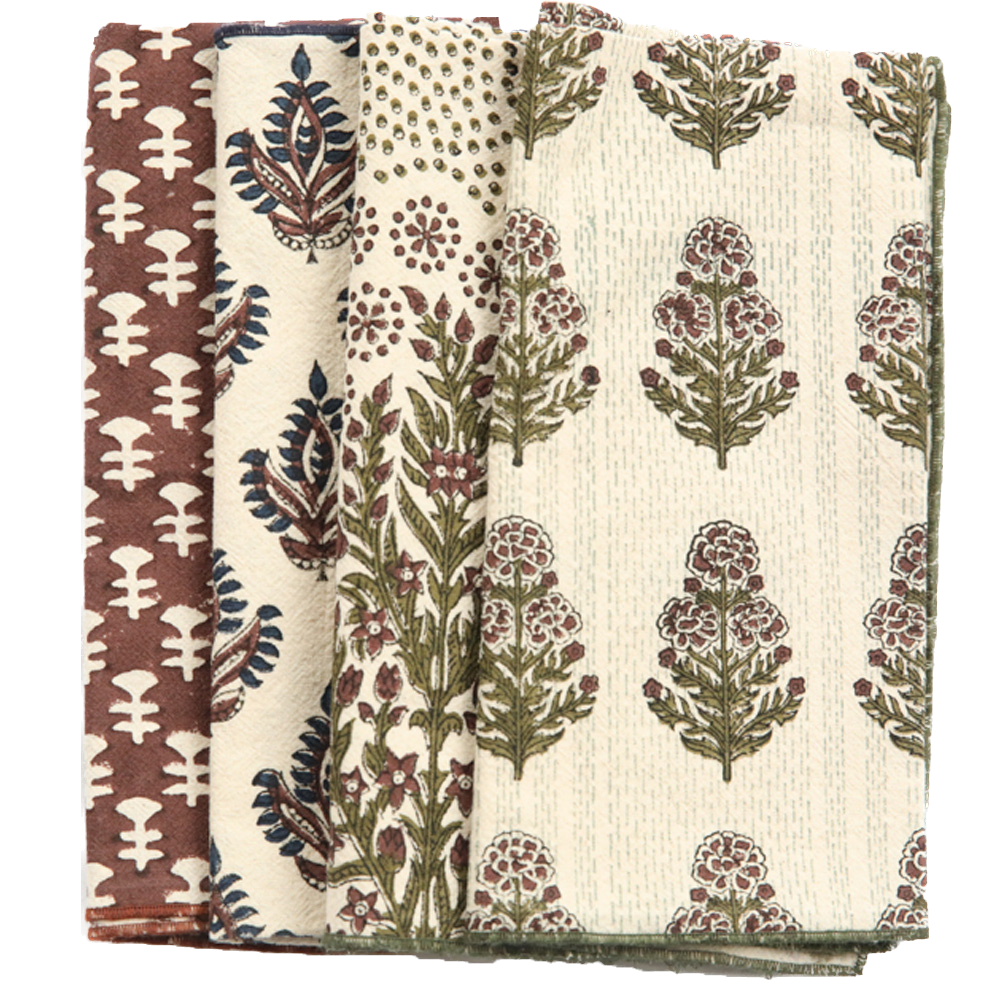 Block printed by hand on Khadi cotton, these napkins combine high-quality handwork, natural fibers and traditional techniques to create unique heirlooms that are a sustainable luxury.