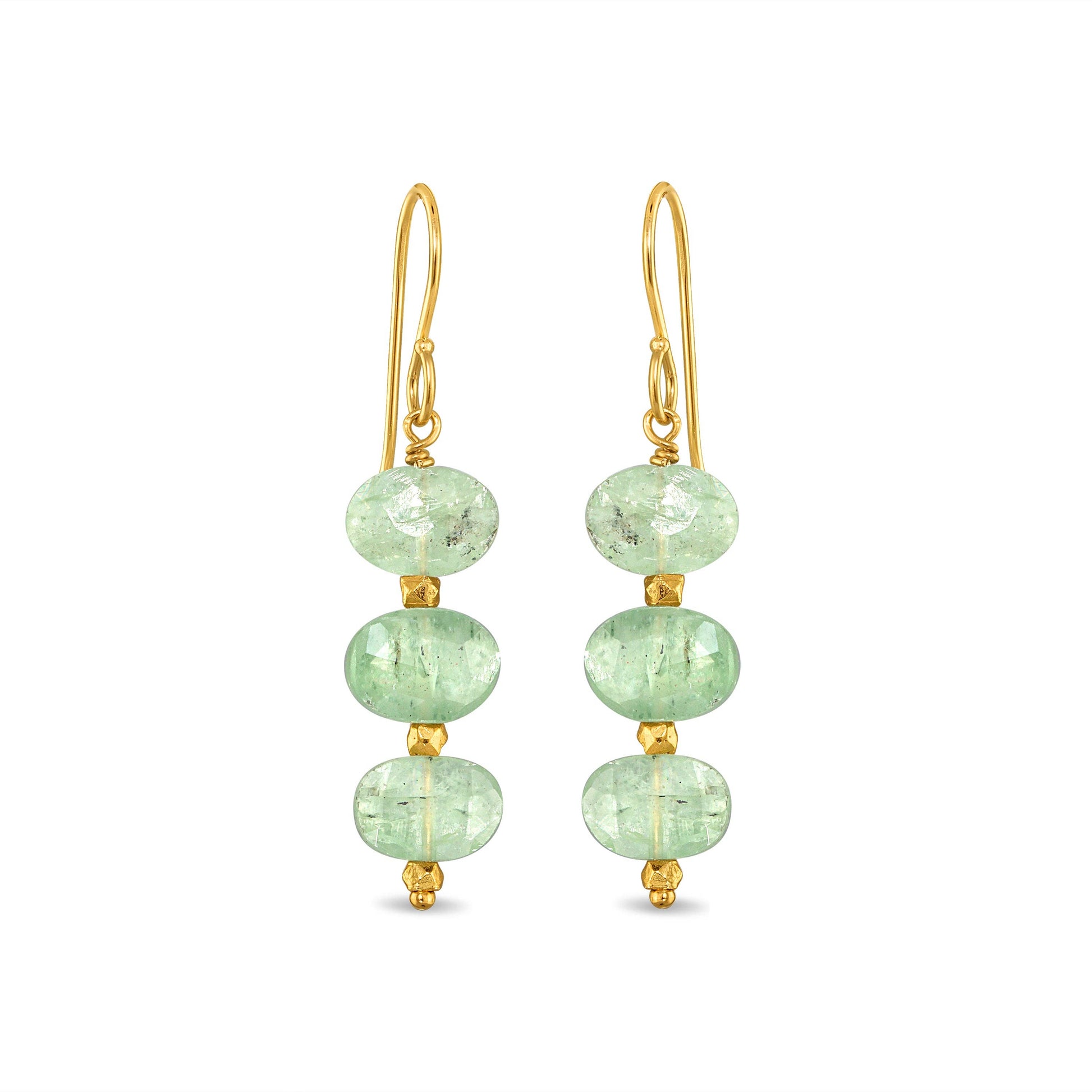 Faceted oval green kyanite stones with sparkle beads in 14k gold vermeil, 4k gold filled French hook ear wires. Tota...