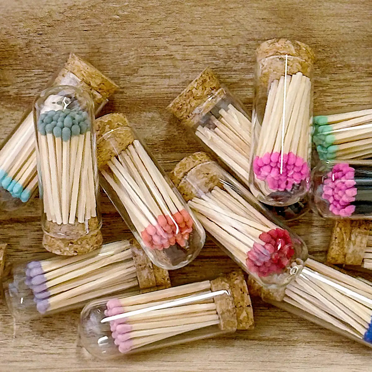 Find where functionality meets delightful design with our premium 2” safety matches + mini cloche. Each unit contains a mini cloche jar with 2” color tipped matches inside and striker for lighting along the side.