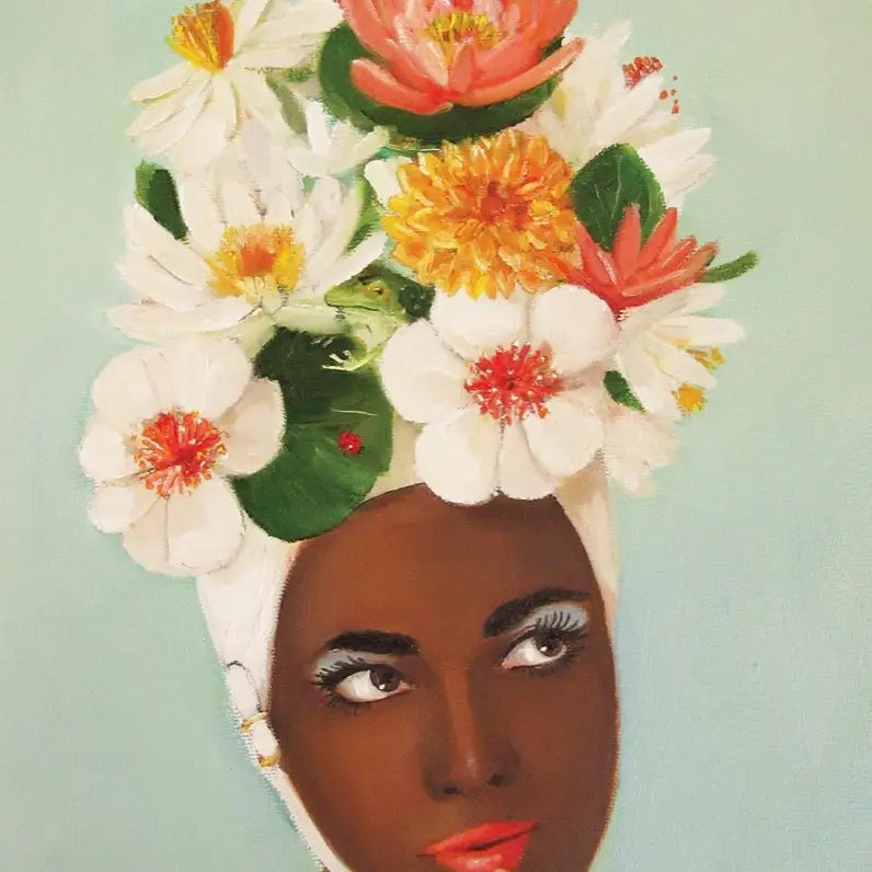 With a marvelous swim cap full of flowers, this beauty is ready for a dip! By artist Janet Hill