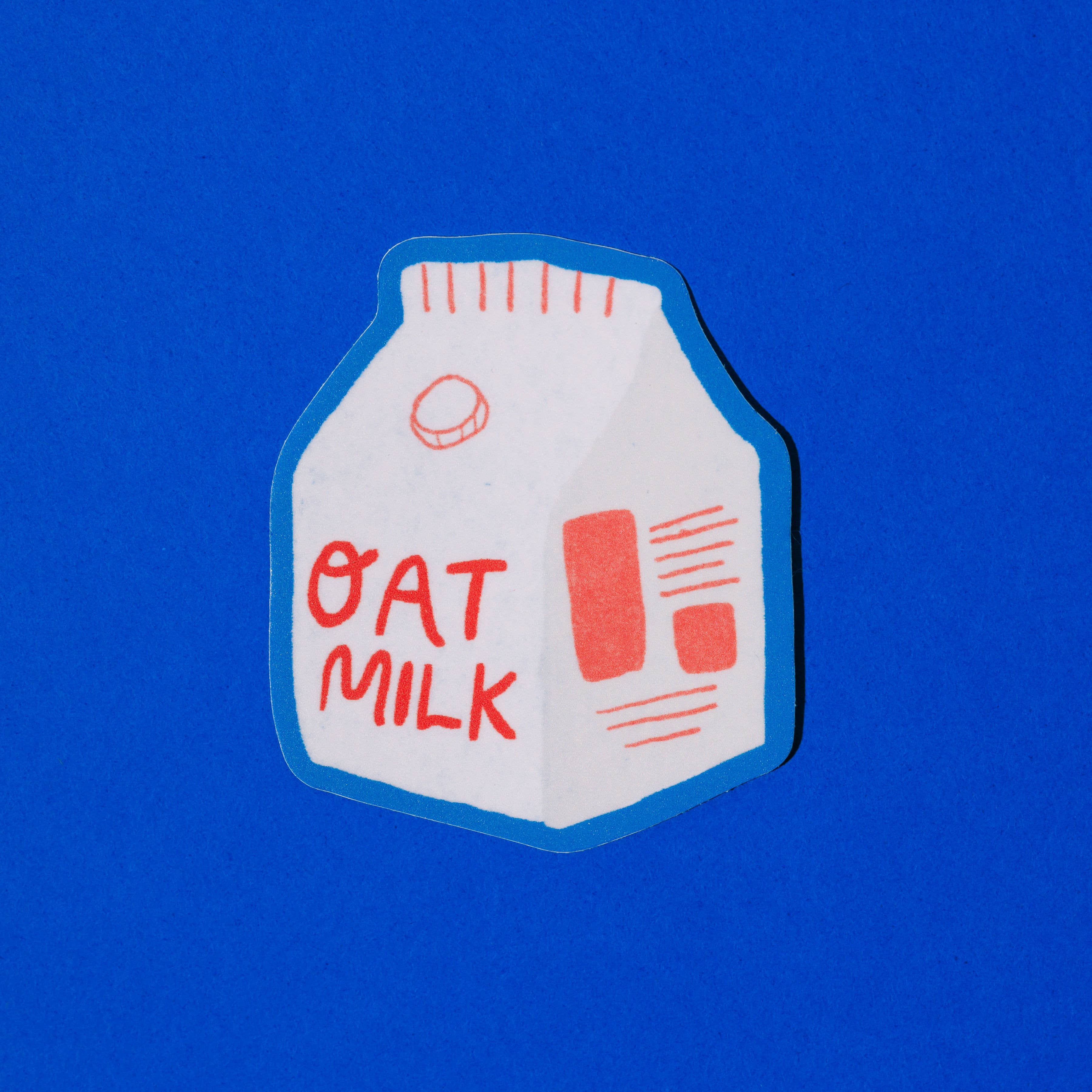 Share your love for your favorite beverage by displaying this colorful vinyl sticker featuring an illustrated carton of oat milk.