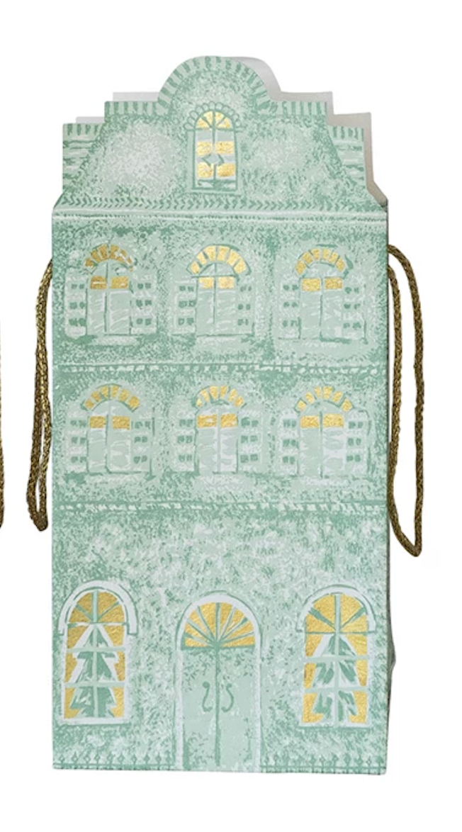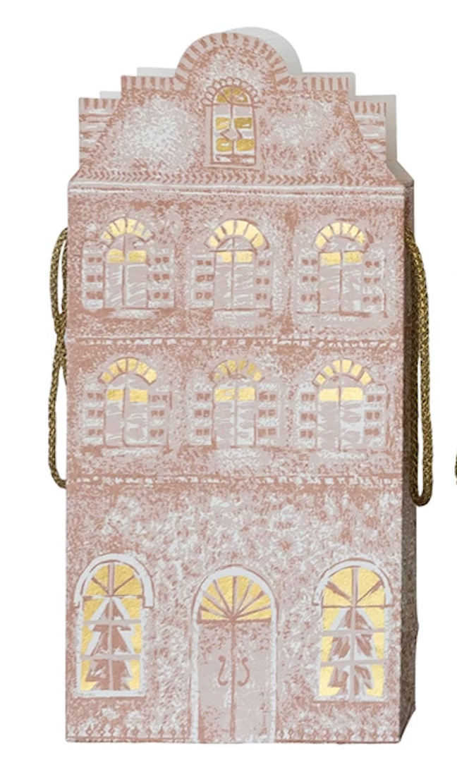 Handmade Printed Recycled Paper House Shaped Gift Bag w/ Gold Foil, 2 Colors