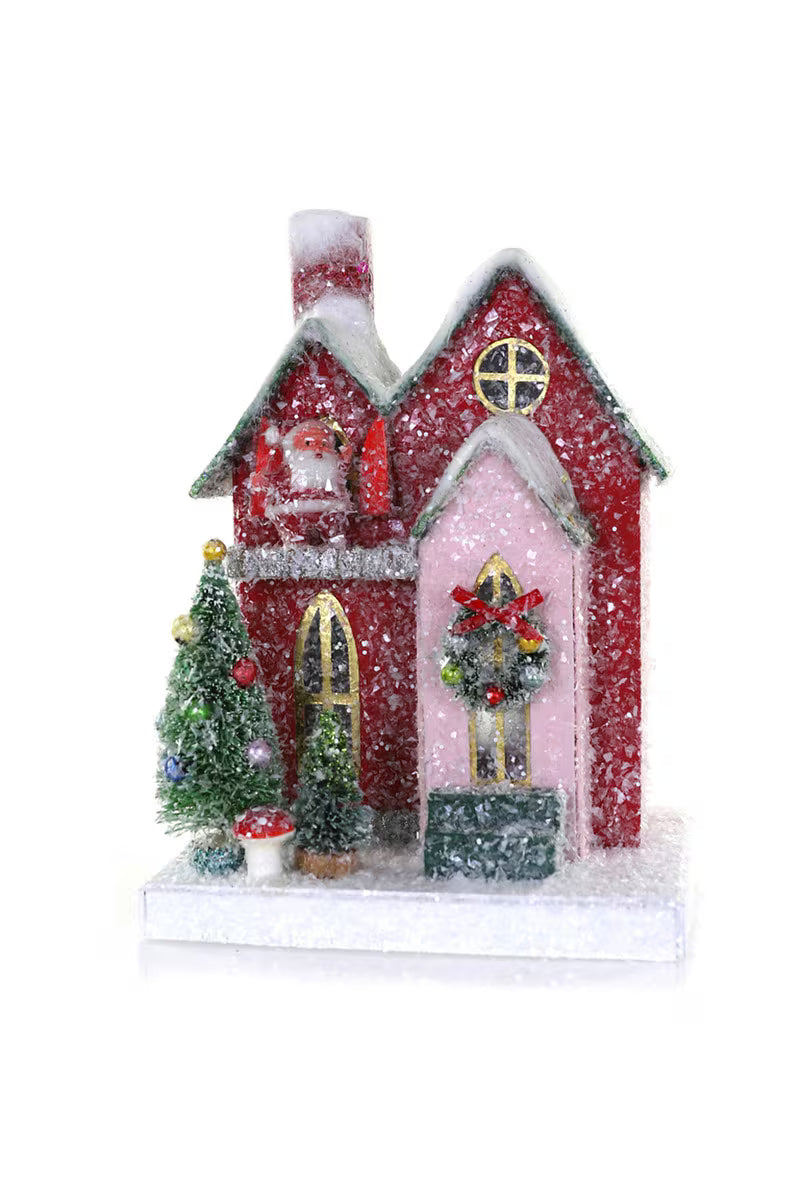 Size: 5.25x4.75x7.5Material: Paper Pulp, Bottle Brush, Batting, Beads, Ribbon, Glitter & Mica