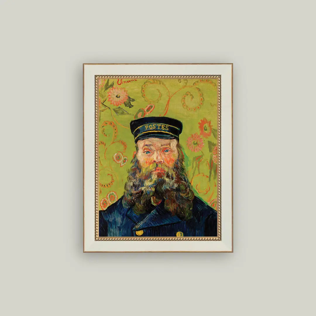 Expertly crafted and intricately detailed, our Portrait of Joseph Roulin is a stunning addition to any art collection. The canvas is delicately beaded and framed in cream brass, adding a touch of elegance to this timeless piece. Bring the beauty of this portrait to your home and enjoy its timeless charm.