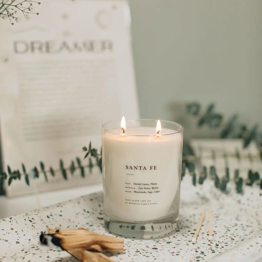 Days exploring the desert landscape surrounding Santa Fe—aromas of orchid cactus and wild sage, juniper and piñon, and nights warming by the kiva fireplace while on a spontaneous February trip inspired this earthy, calming scent.