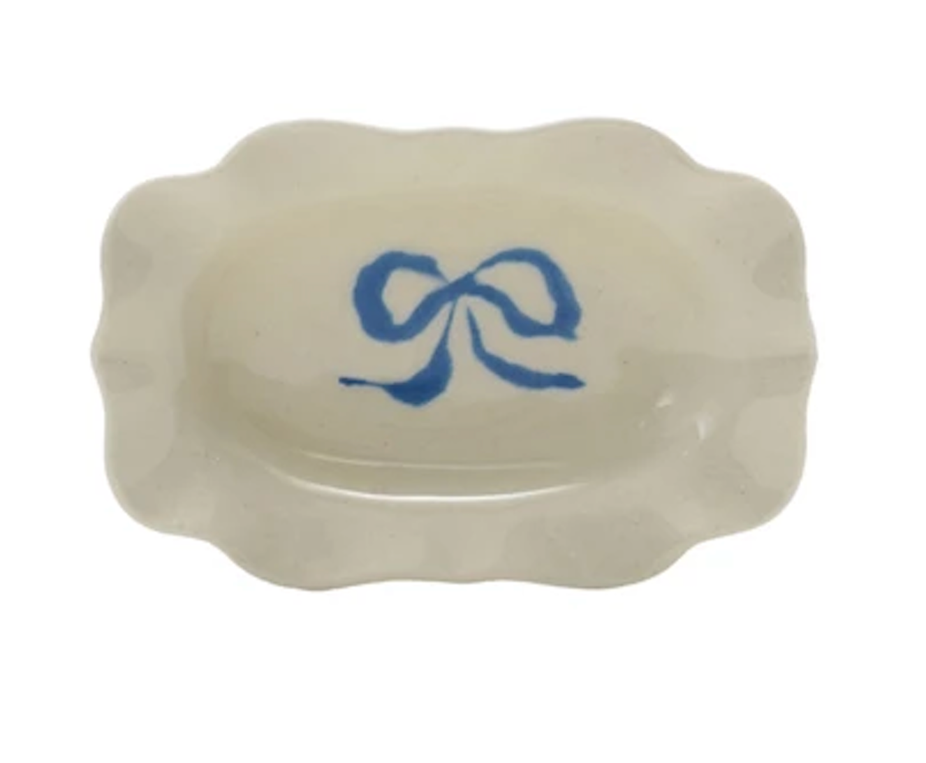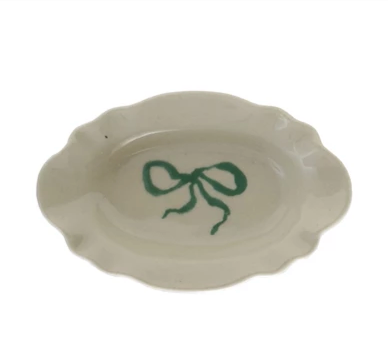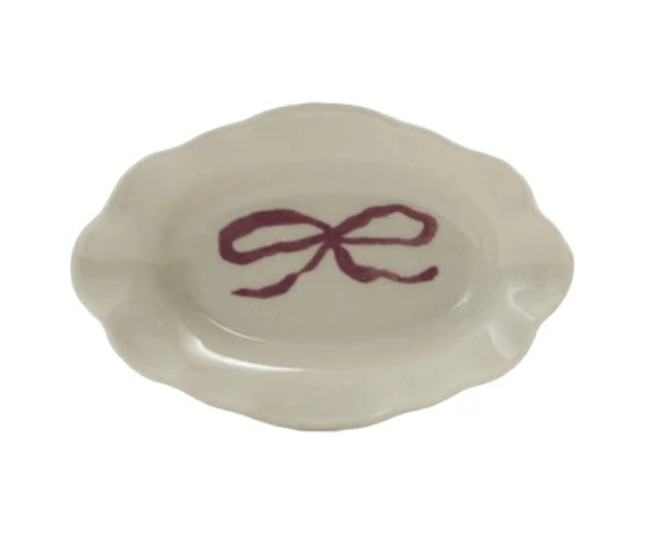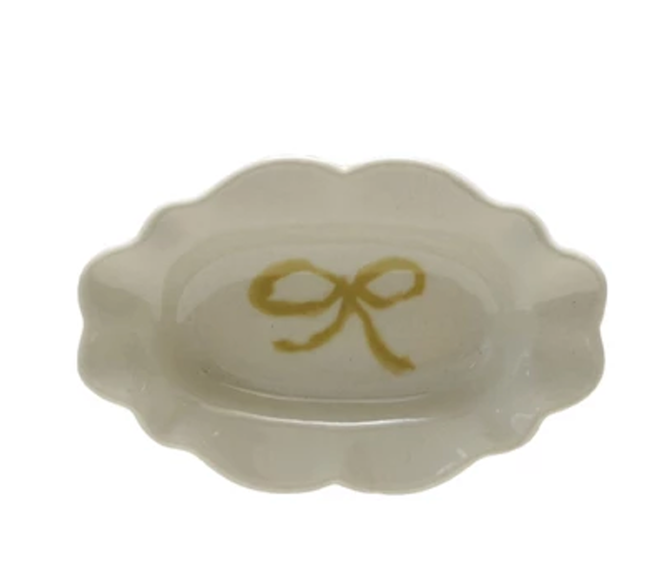 3"L x 2"W Stoneware Scalloped Dish w/ Bow, 4 Colors