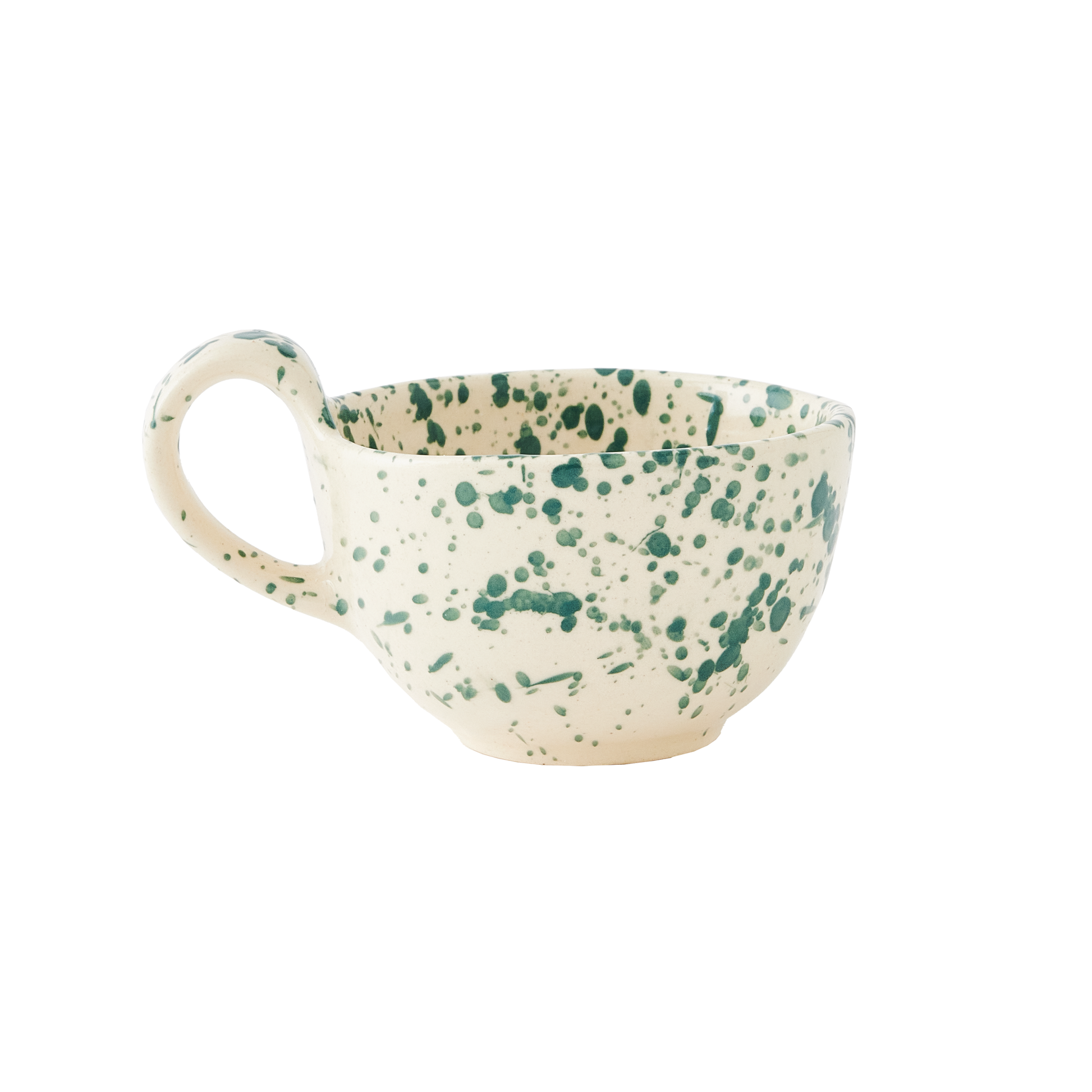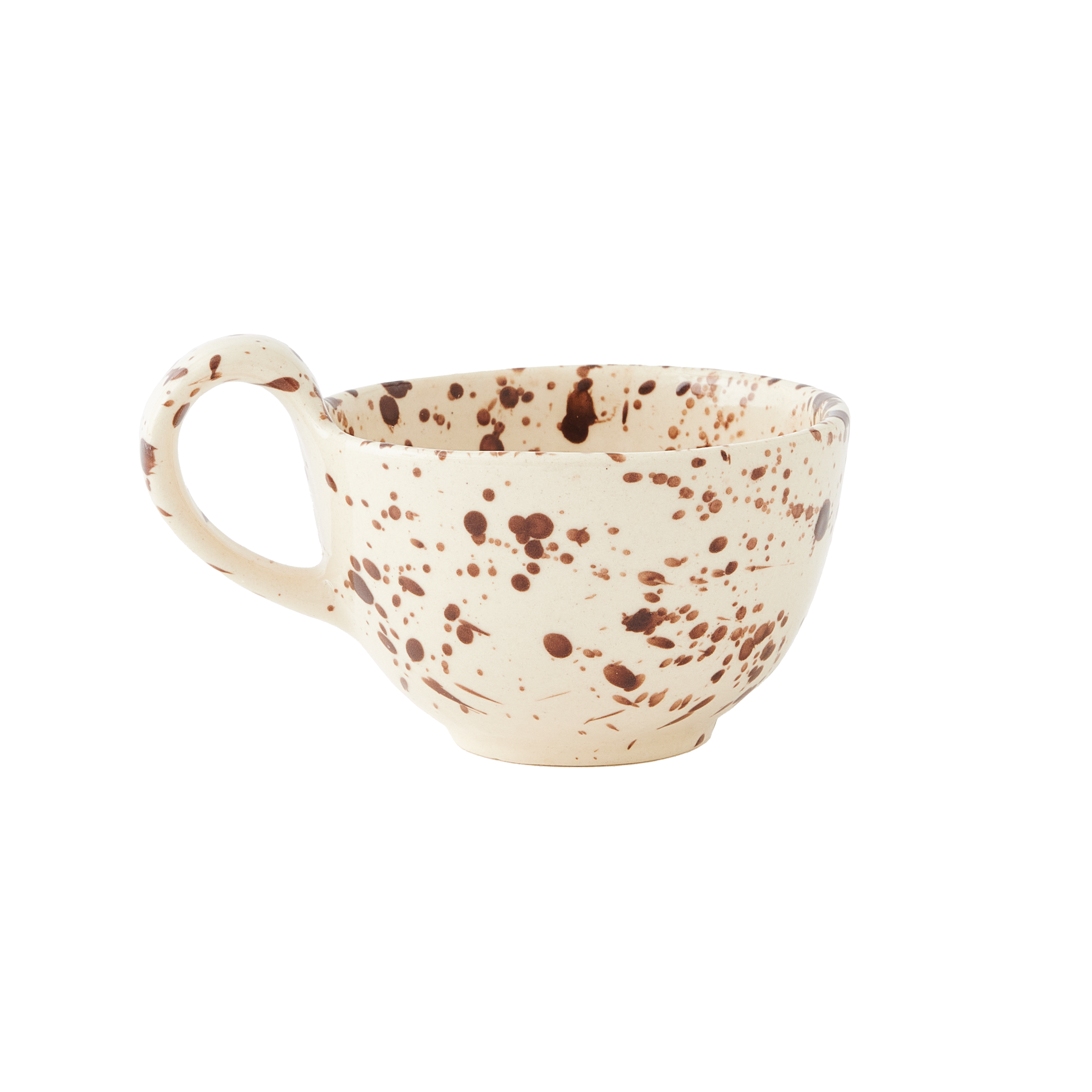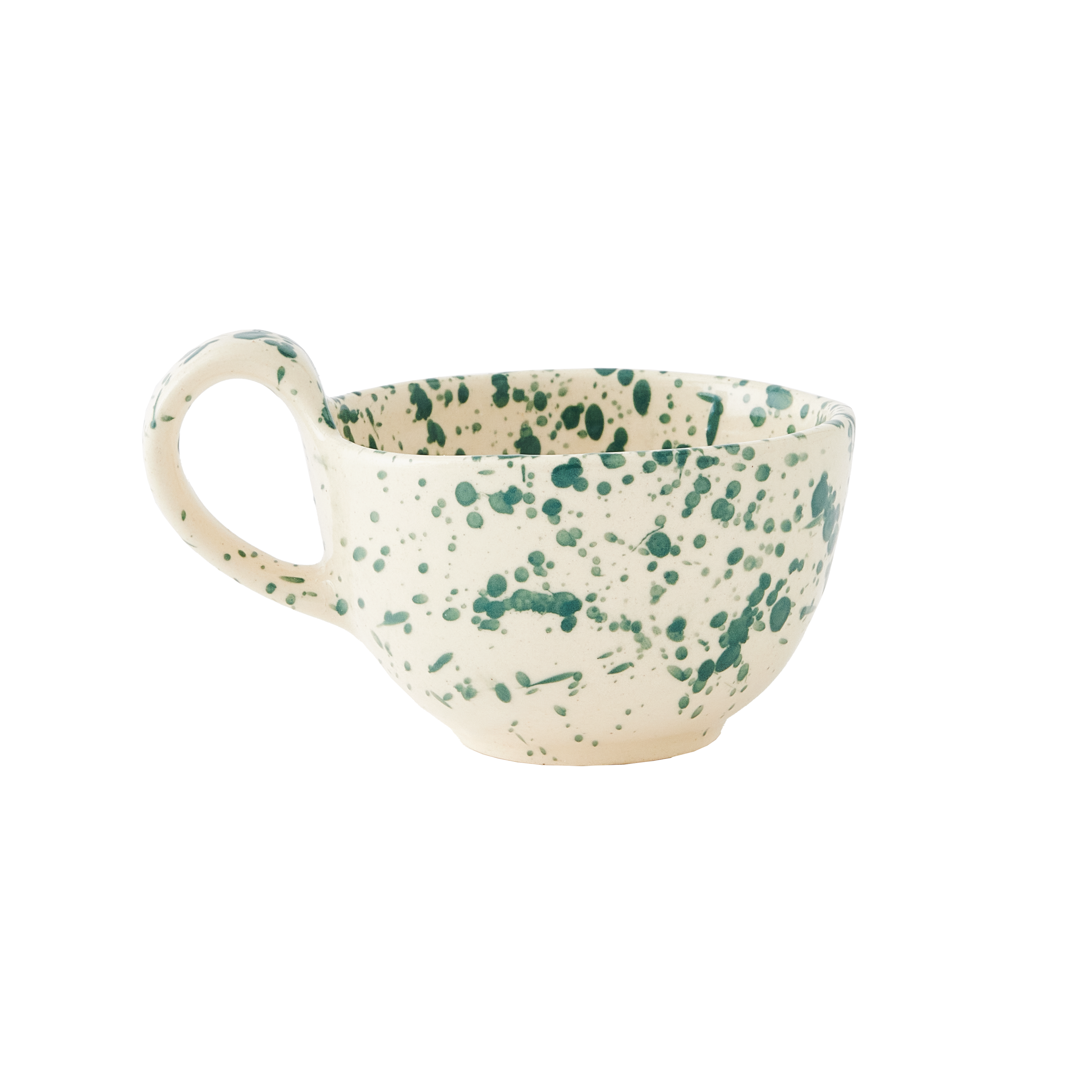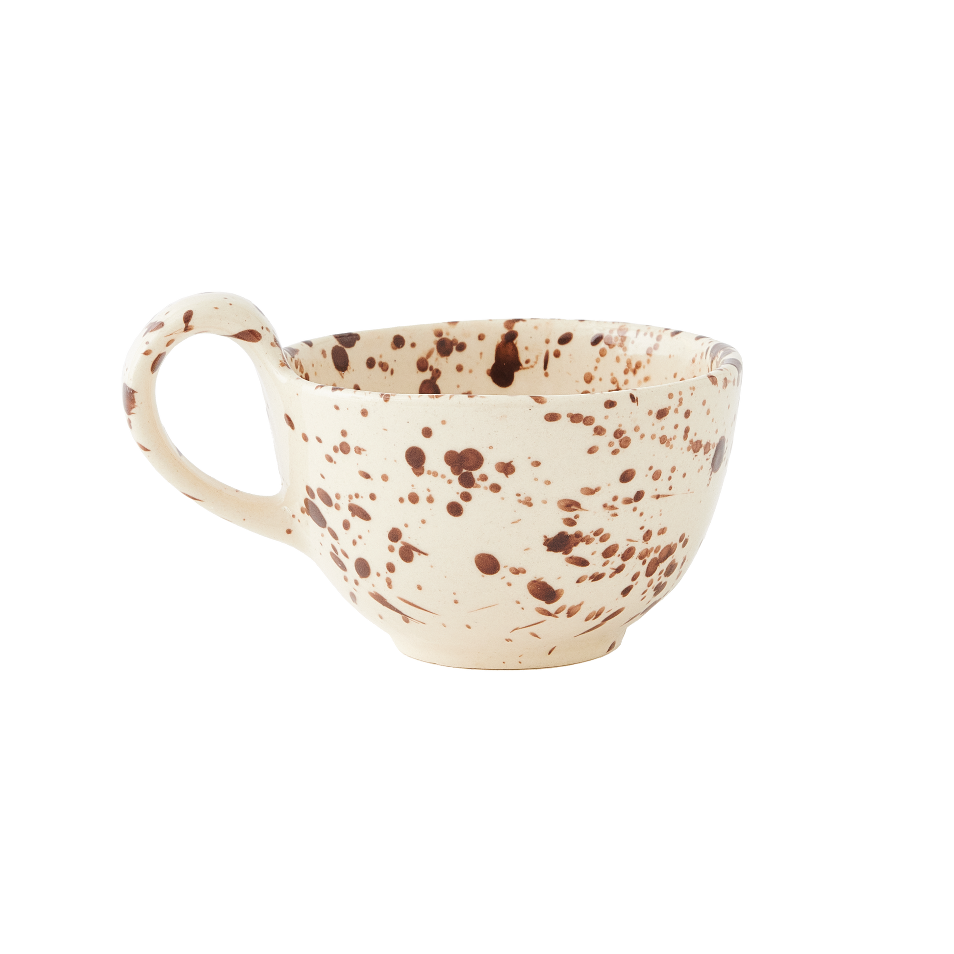 This cheerful cup in a painterly palette with hand-splattered glazes inspired by storied Grottaglie pottery brings a playful pop of color to your tablescape.
