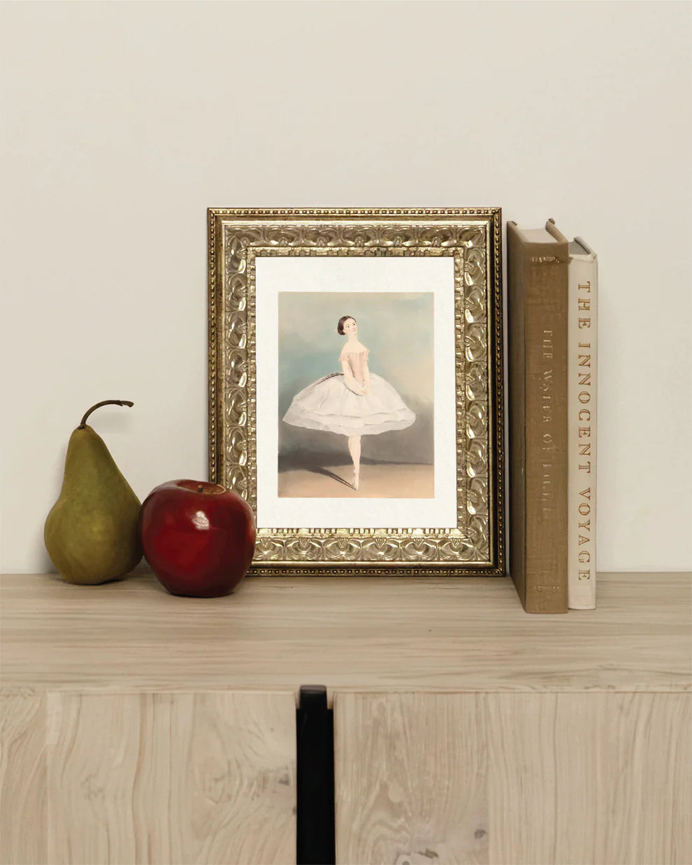 Ballerina framed antique art is printed on quality canvas, giving it a lasting finish, then placed into our handcrafted Fancy Gold frame. This is an authentic reproduction of the original artwork.