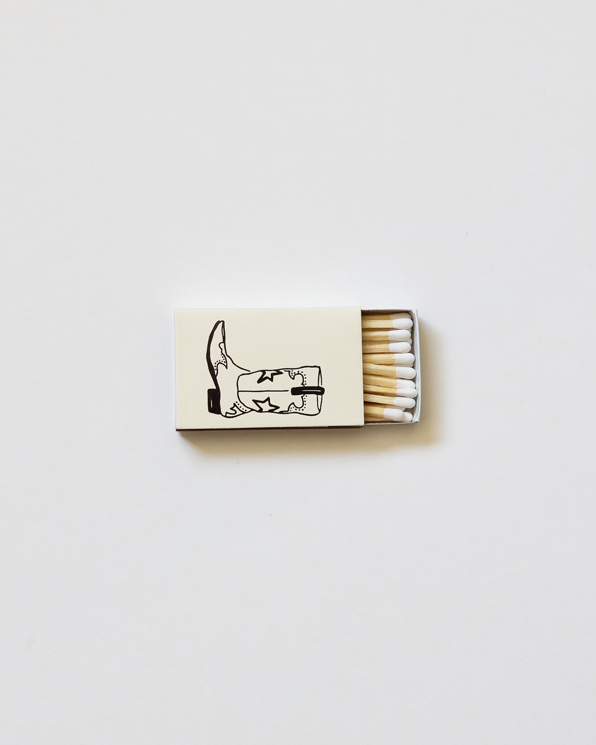 Say hi to our Western Cowgirl Matchbox! With a cute cowgirl boot and horseshoe illustration, this matchbox makes a trendy and unique gift. The ivory paper and black ink add a touch of sophistication, making it perfect for any occasion. Yeehaw!