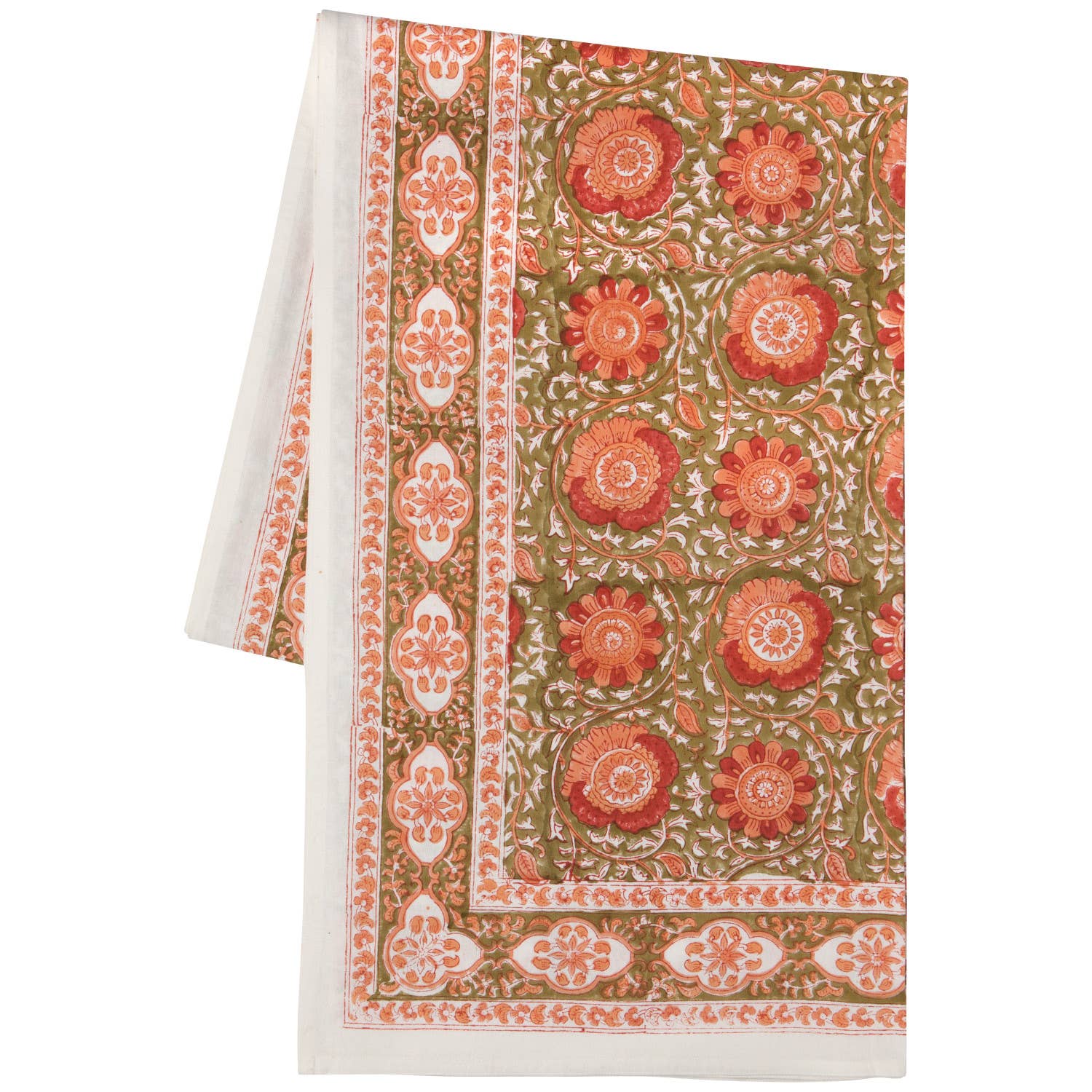 Burgeoning with a blush of blooms and a flourish of verdant vines, the Zinnia tablecloth is a fresh and lively accent for the home.